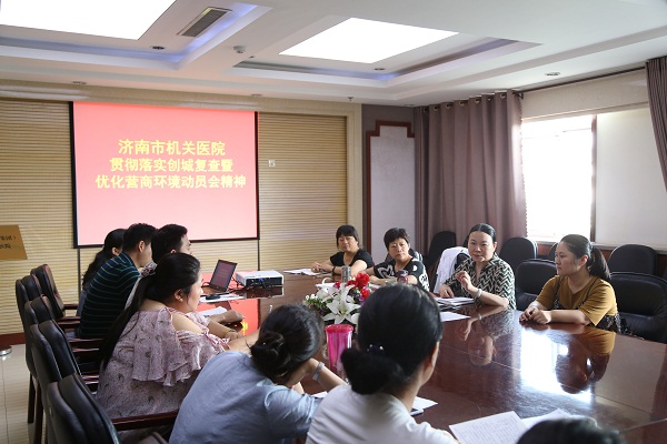 院长杜文建首先带领大家集中学习了《济南市卫生计生系统优化营商环境督查行动实施方案》的有关内容。杜院长强调,要充分认识优化营商环境的重要意义,切实增强责任感、危机感和紧迫感,把营商环境提升工作渗透到日常工作的方方面面,全力以赴抓好各项任务措施的落实。