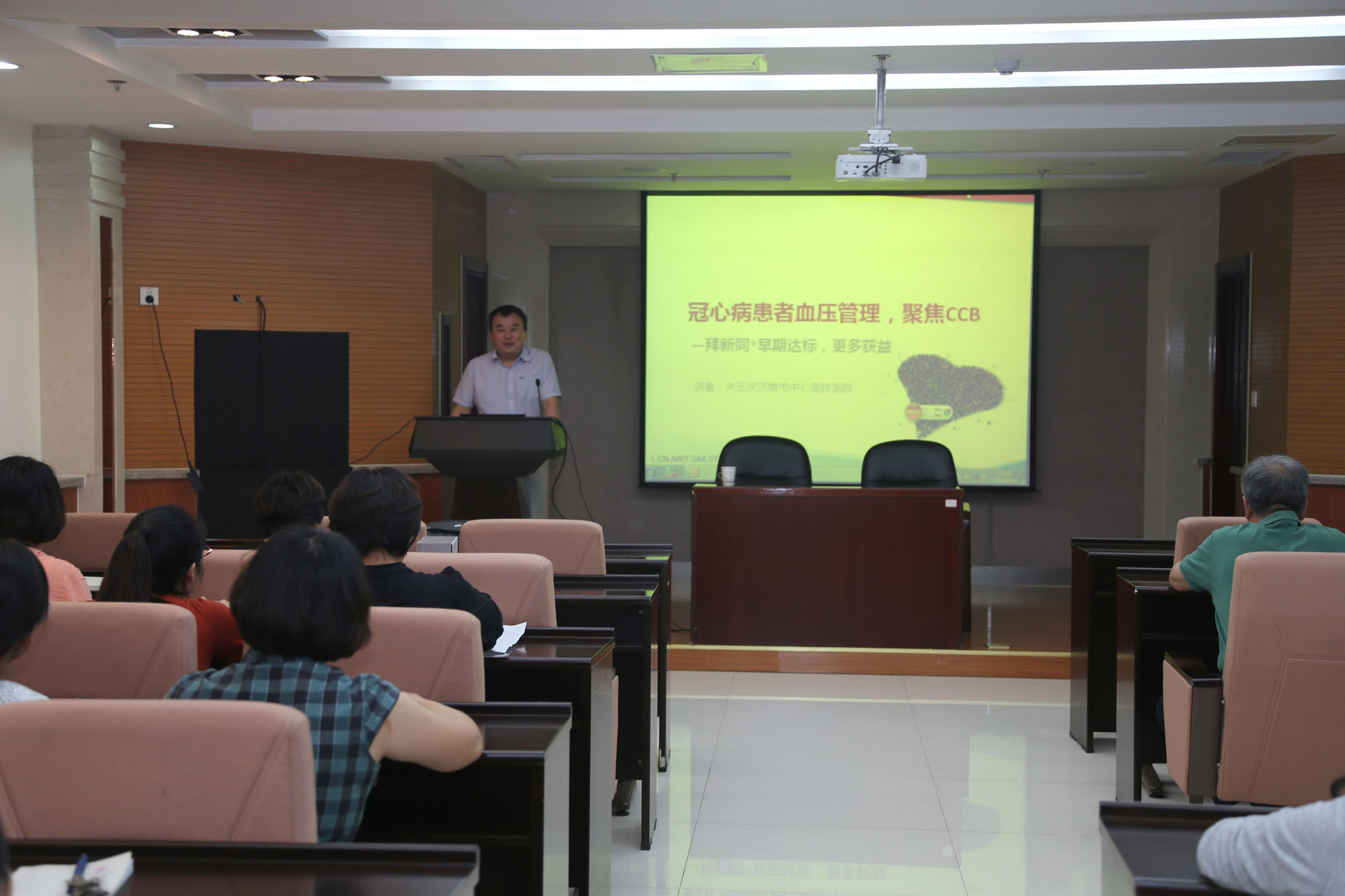 心内科关玉庆主任医师、肾病科王小平主任医师为全院职工分别进行了冠心病患者血压管理、慢性肾脏病患者血压管理相关知识的培训讲座。