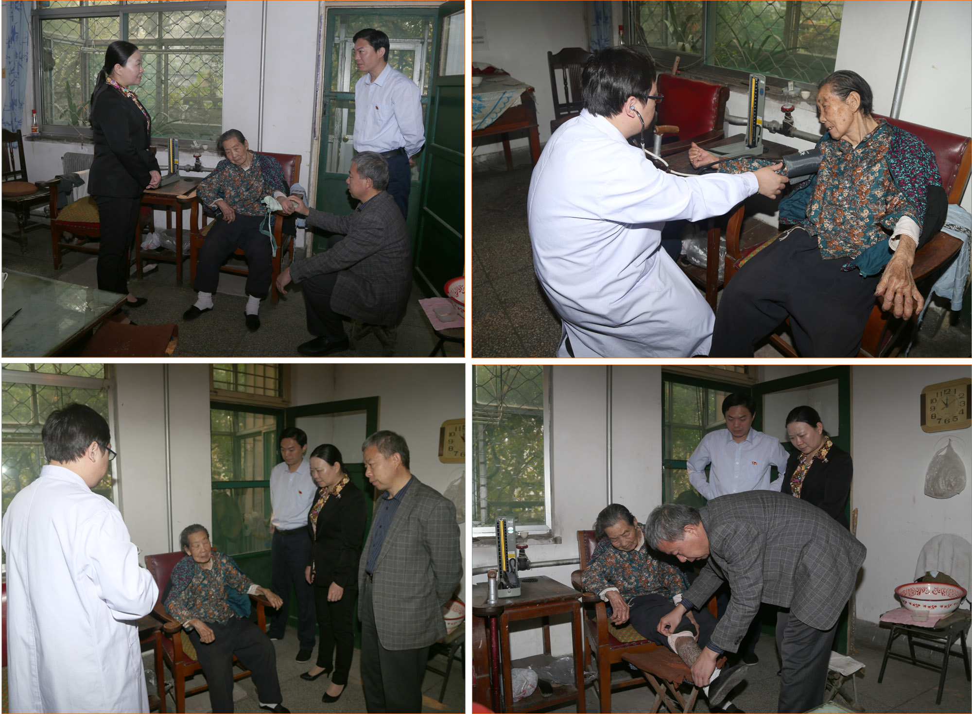 10月19日上午,在我国传统佳节重阳节暨老人节即将来临之际,中文av杜文建院长一行4人来到济南市干部休养所,在王炜所长的陪同下,看望慰问96岁高龄的独居老人韩玉珍,为老人送医送药,并致以节日的诚挚问候。