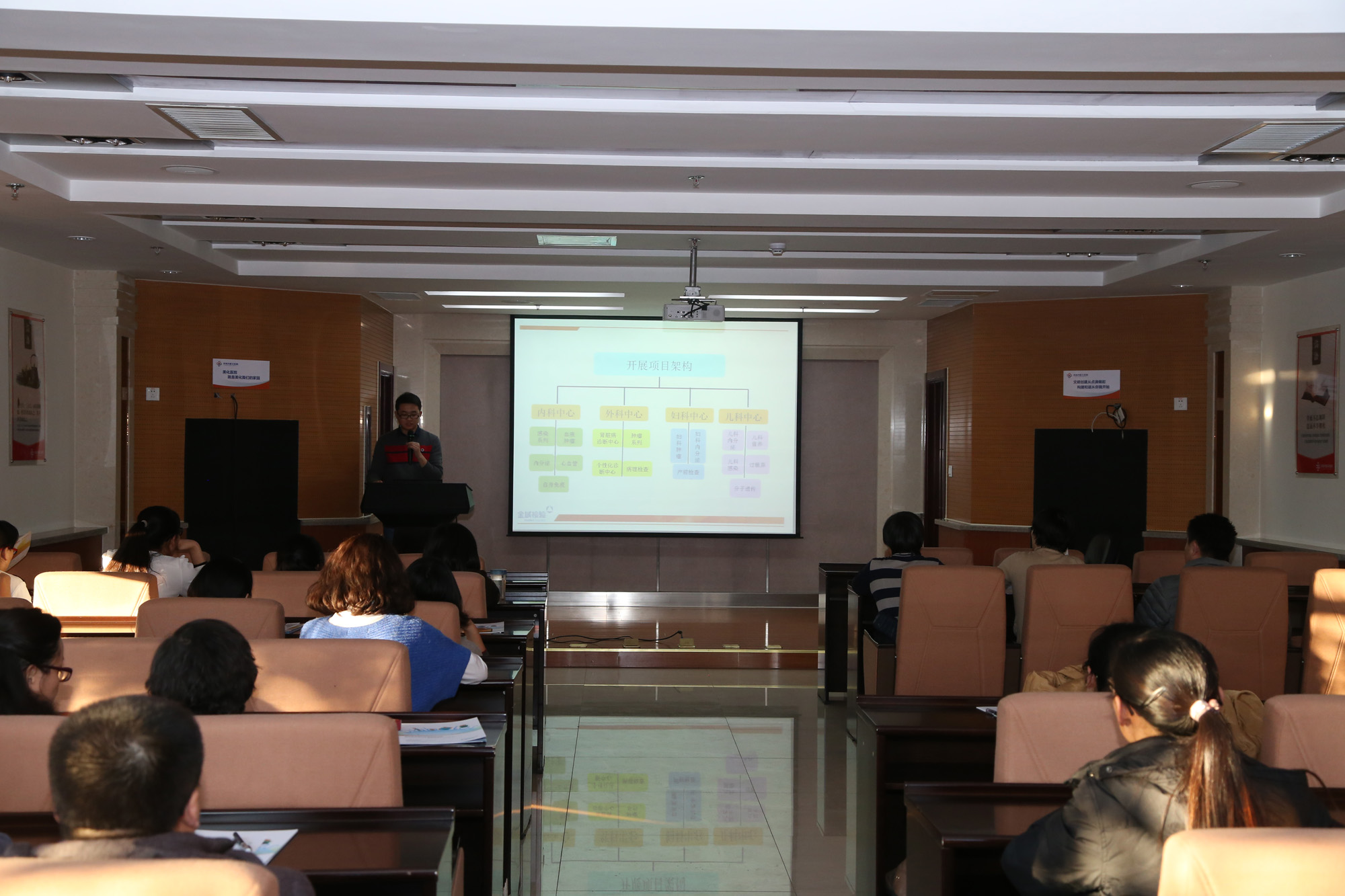 这次培训从工作实际出发,按需培训了二部分内容:一是由金域检验中心的专业讲师给大家深入的讲解了甲功七项、糖尿病自身抗体、高血压五项、肿瘤标志物检测的临床应用;二是查体中心主任向大家讲解了新进仪器鹰眼检测系统的临床意义。这次培训,中文av职工积极参与,在不耽误工作的前提下踊跃参加本次活动,充分体现了机关中文av