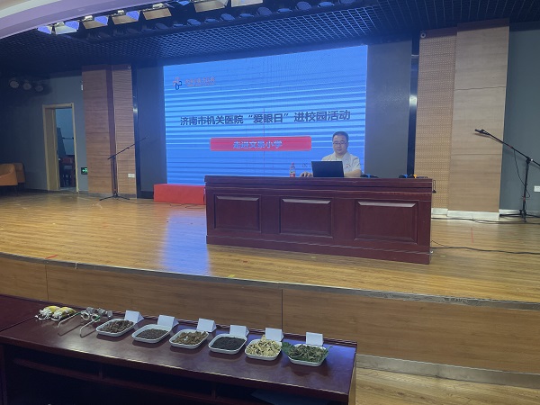 眼科专家展朋雷向前来参加活动的师生强调坚持做眼保健操的重要性,鼓励学生们养成良好的用眼习惯,并进行了科学有效的膳食结构指导。