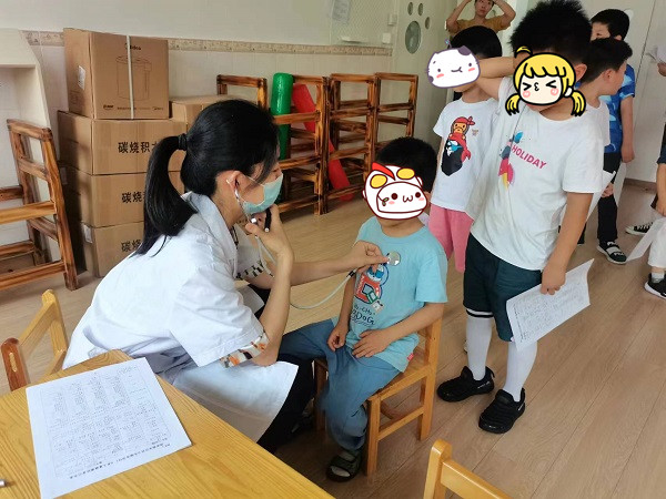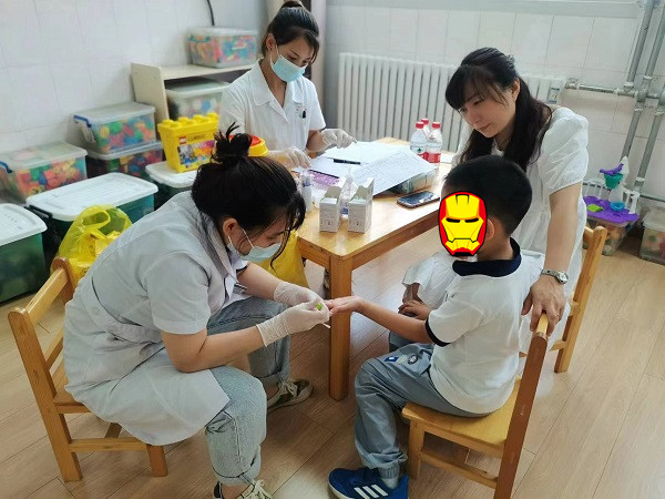 干休所社区卫生服务中心医务人员在做好日常医疗和疫情防控工作的前提下,克服时间紧张的难题,深入辖区幼儿园开展健康查体工作。