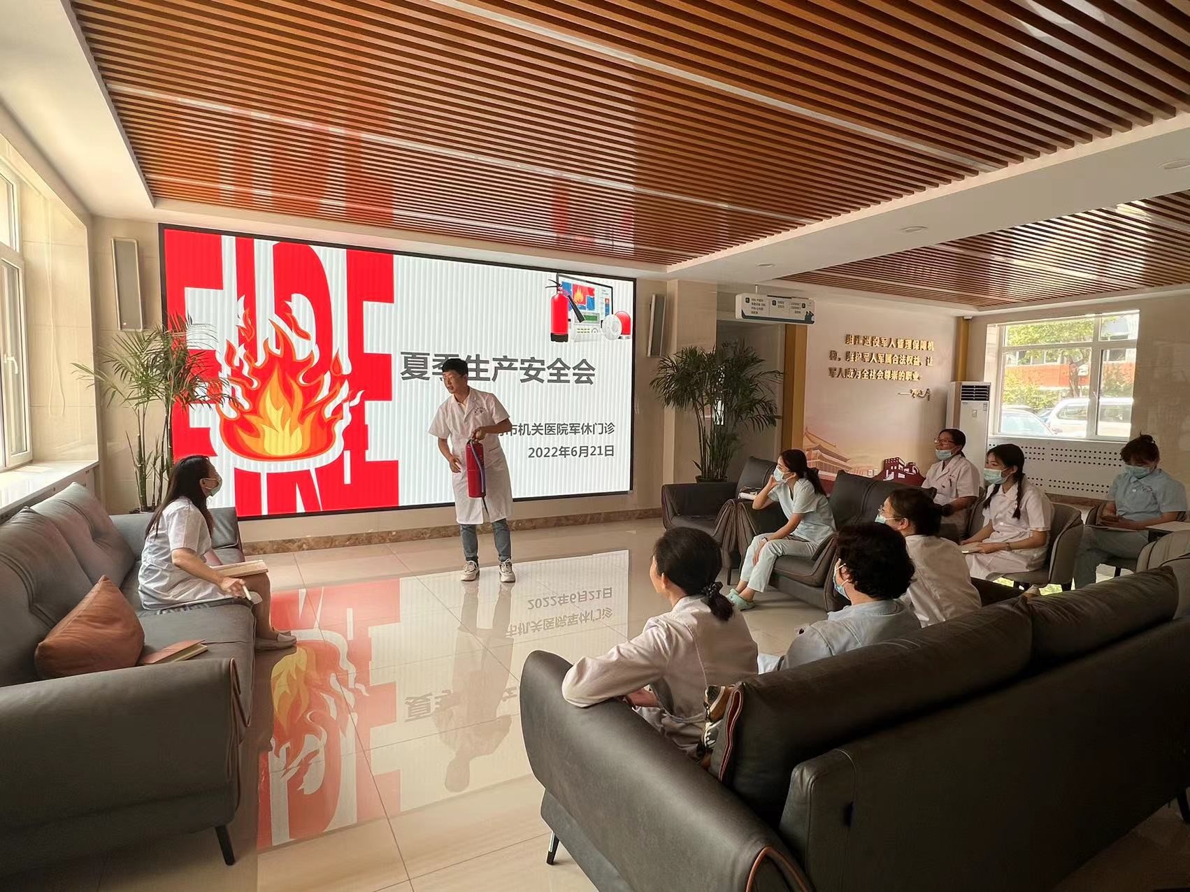 军休门诊开展夏季安全生产培训,军休门诊全体医护人员参加培训。