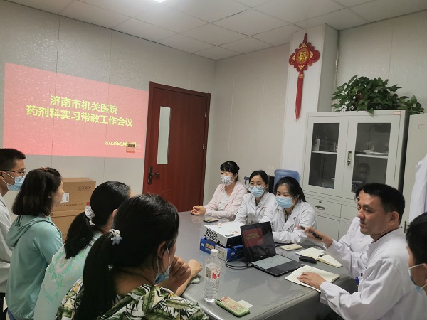 会上,袁主任首先对科室本年度实习带教工作进行了总体部署,制定了科学合理的轮转方案,保证每个学生都能全面了解药剂科工作。袁主任要求,各位带教老师要结合岗位实际为制定实习方案,真正达到“以践促学”的目的;要认真履行带教职责,做到“放手不放眼”“育才更育德”。