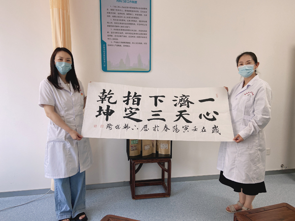 刘大夫对于患者康复情况深感欣慰,收到书法作品后表示,今后将一如既往地以患者为中心,不断提升自己的业务能力,提升为患者服务的意识,尽自己所能为患者解除病痛。”(孙孔云)