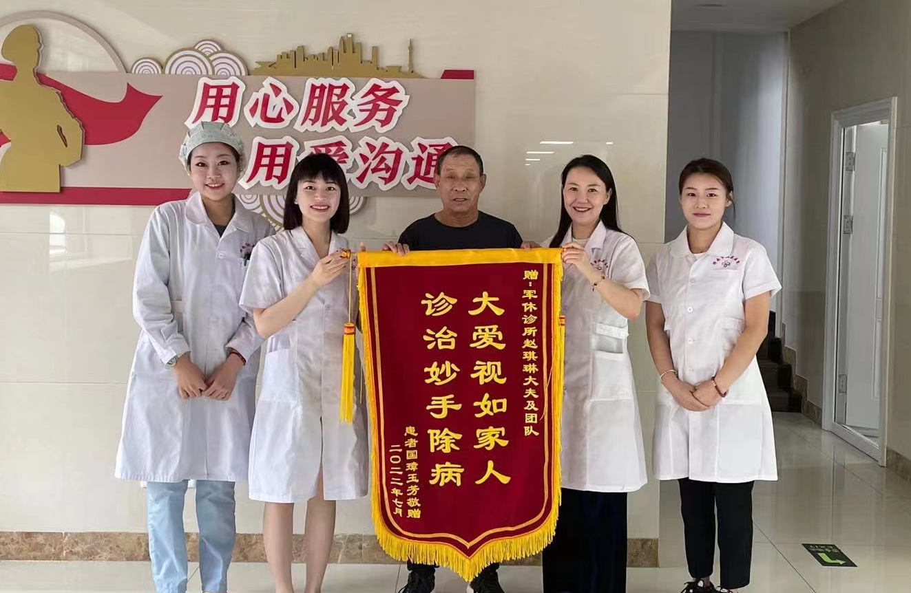 军休门诊中医科赵琪琳大夫及其团队收到了患者蒋先生送来的一面锦旗,上书“大爱视如家人 诊治妙手除病”,以此来感谢赵琪琳大夫及其团队在他患病期间的精心治疗和健康指导,表达了对全体军休门诊医护人员的感激之情。