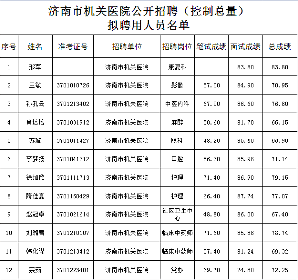 按照《济南市卫生健康委员会所属事业单位公开招聘人员(控制总量)简章》,根据笔试、面试及考试总成绩,我单位于2022年6月29日-8月5日组织了公开招聘人员考察体检工作。