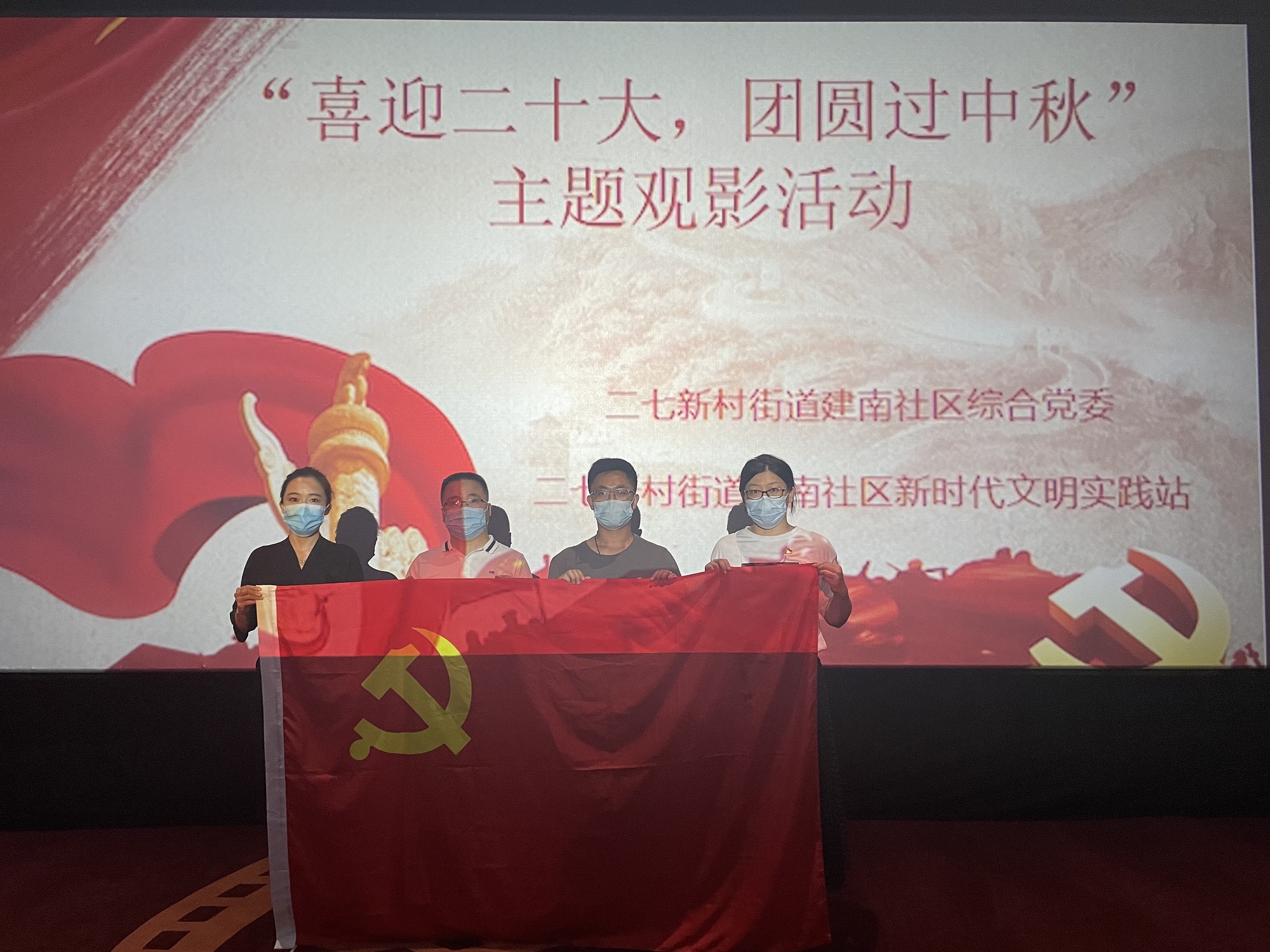 院区党支部联合二七新村建南社区综合党委组织预备党员、积极分子开展了“喜迎二十大,团圆过中秋”主题观影活动。