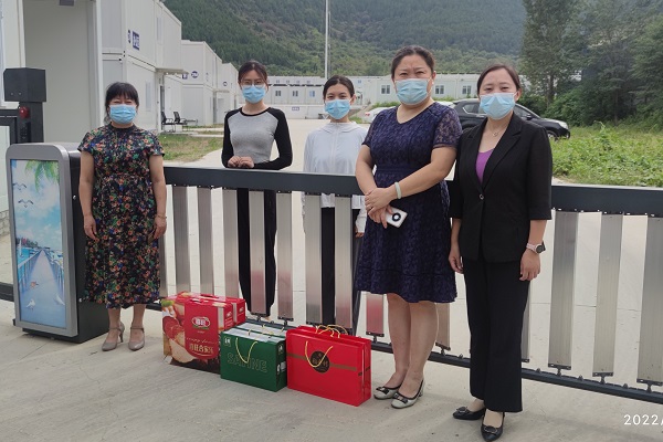 副院长刘静、工会主席董懿、护理部主任姜双叶来到市中区方舱集中隔离点,看望慰问值守在疫情防控一线的工作人员,为她们送上节日慰问品。