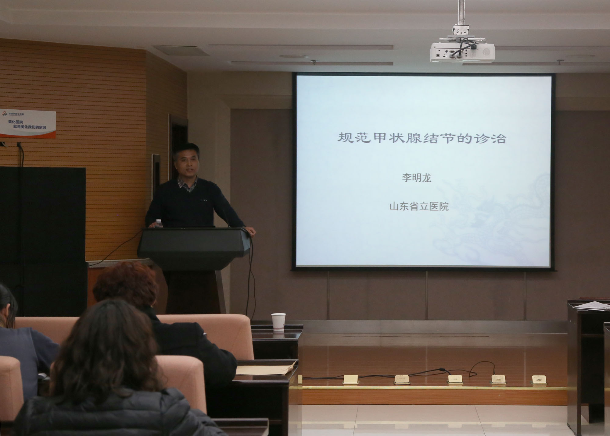 为进一步提高中文av 医疗水平,更好地为广大患者服务,12月16日,中文av医务科邀请省立中文av 内分泌科主任医师做《规范甲状腺结节的诊治》专题讲座。除值班人员外,全体职工参加了此次培训。
