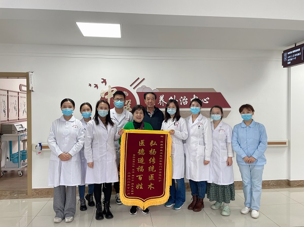 军休门诊康复病房里,周女士、杨先生夫妇将一面印有“弘扬传统医术 医德造福百姓”的锦旗送到了医护人员手中,激动地表示:“感谢中医治好了我们头晕的毛病,感谢科室的医护人员对我们多天的悉心照料,我们现在觉得身上可有劲了,自由活动也不晕啦!”