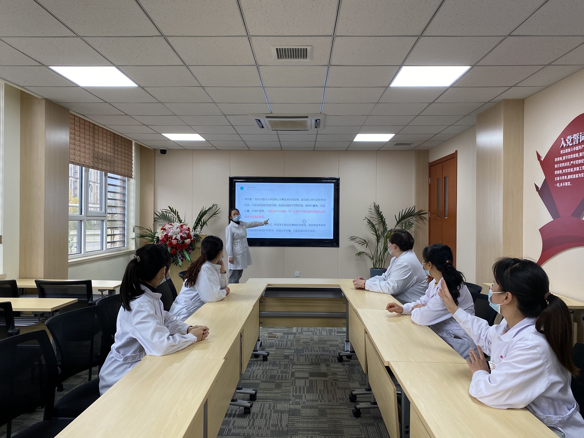东院区组织职工在二楼会议室开展医务人员手卫生规范培训。