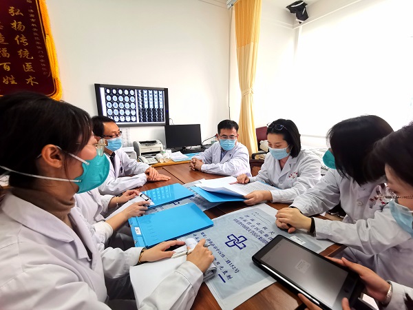 会议邀请中医科主任、放射科主任围绕临床病例共同参与讨论。在听取了住院医师的病例汇报后,放射科主任针对汇报中的问题进行了答疑,并详细讲解了关于脑血管疾病、脊柱相关疾病的影像学诊断要点;中医科主任从中医经典的角度引经据典辨证论治,提出了相应的诊治思路和观点。