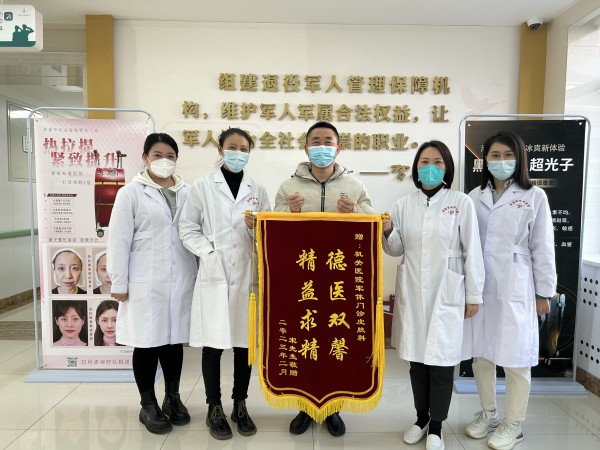 军休门诊,将一面写有“德医双馨 精益求精”的锦旗送到了皮肤科医师手中,感谢他们专业耐心的服务。
