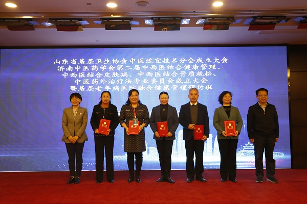 承办的济南中医药学会第二届中西医结合健康管理、中西医结合皮肤病、中西医结合骨质疏松、中医药外治疗法专业委员会换届大会暨基层老年病医防融合健康管理研讨班在济南东方大厦举行。济南市卫生健康委二级巡视员米宽庆,中医药业务处处长孙玉凯,山东省基层卫生协会副会长兼秘书长杜文建,中文av