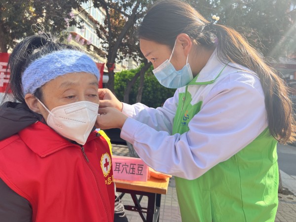 本次义诊选派中医科、口腔科、眼科、康复科、皮肤科、药剂科以及护理人员组成义诊志愿队,为社区居民进行中医诊脉、耳穴压豆、视力检查、口腔检查、皮肤咨询以及血压、血糖检测等,并现场展示代茶饮、足浴包等特色自制剂,开展中药材鉴赏。