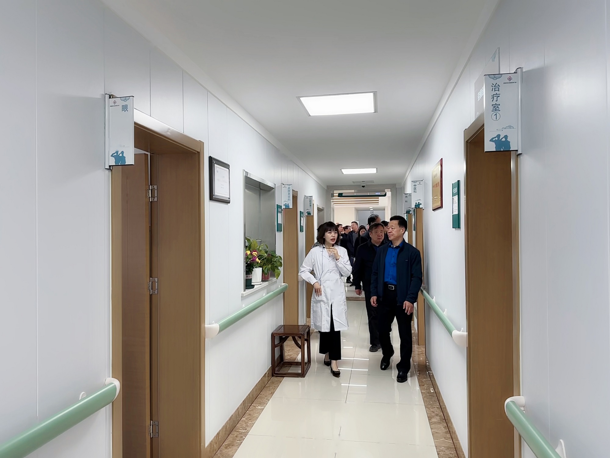考察组首先听取了军休门诊关于医疗康养工作的详细介绍,随后参观了军休门诊康养融合劳模创新工作室、中医外治康养中心、中医康复病房,了解了军休干部基本医疗、健康保健等工作的运行情况。