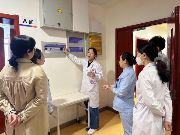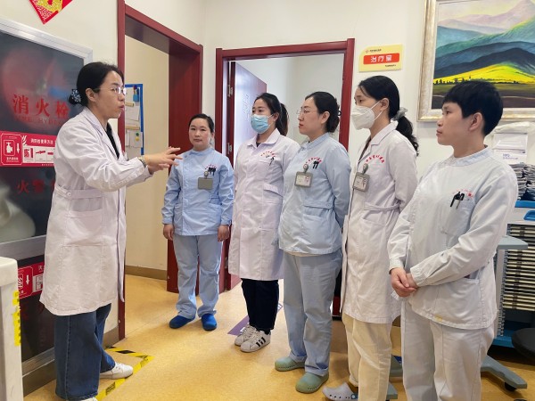 负责人刘苗针对科室报警器、自动洒水装置、浓烟报警装置及消防栓、灭火器的使用等进行了一一讲解,并就发生火灾时如何快速切断电源、如何报警、如何快速疏散人员安全逃离及扑灭初起火灾等知识进行了培训。随后,按照重新修订的科室火灾应急预案,科室全体医护人员现场模拟火灾发生时报警、扑灭初起火灾及安全逃离等进行了演练。