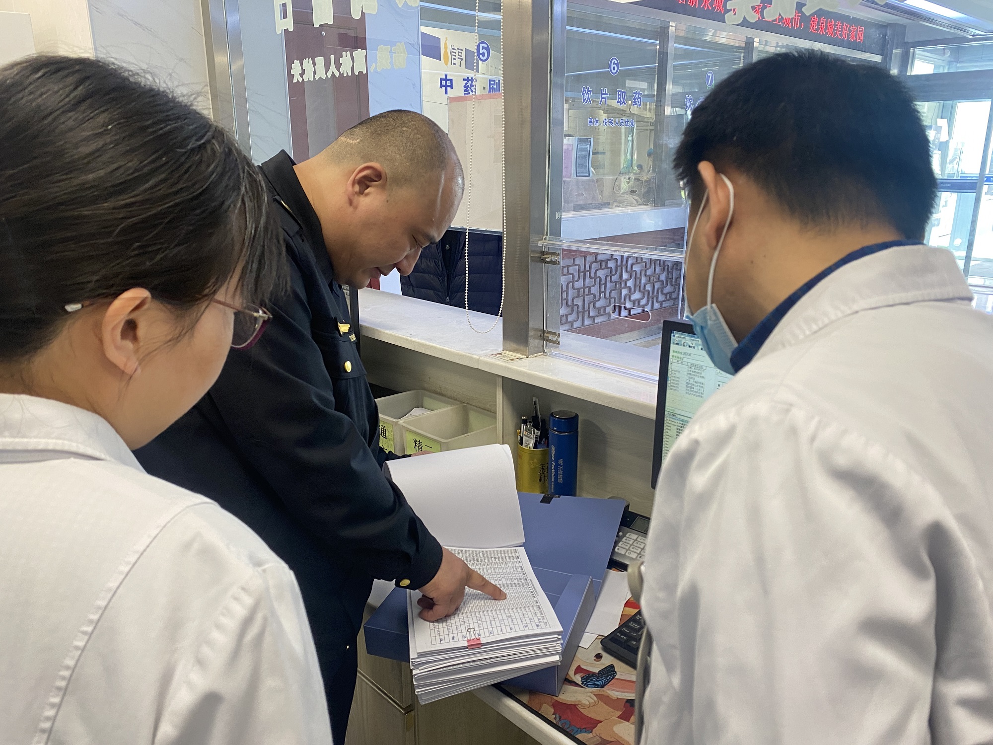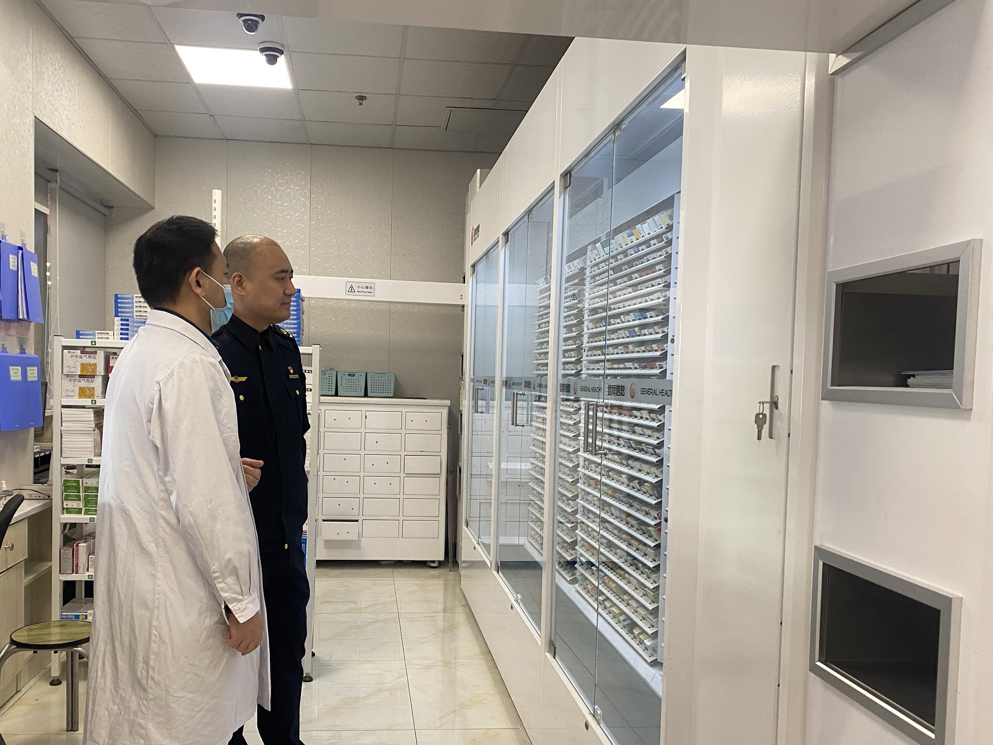 对“规范化药房”创建工作开展专项检查,副院长渠鹏程、药剂科负责人陪同检查。