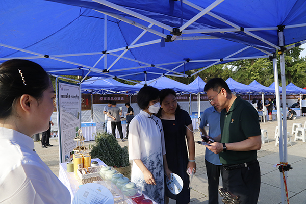中医药文化展示区,中药香囊、紫草膏、中药特色产品及中医药文创产品等吸引了许多领导及现场群众驻足体验。多名中医药专家现场义诊,科普中医药文化知识,提高群众中医药文化自信,推动中医生活化、生活中医化。(刘洋)