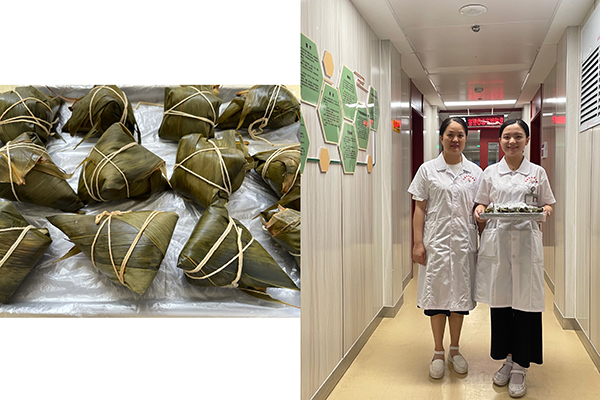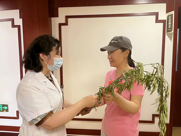 中医经典病房的医护人员们为住院患者们送去了香喷喷的粽子,祝福他们早日康复;治未病中心的工作人员向前来预约三伏贴、三伏灸的患者发放艾草,将浓浓端午的节日祝福送给他们。