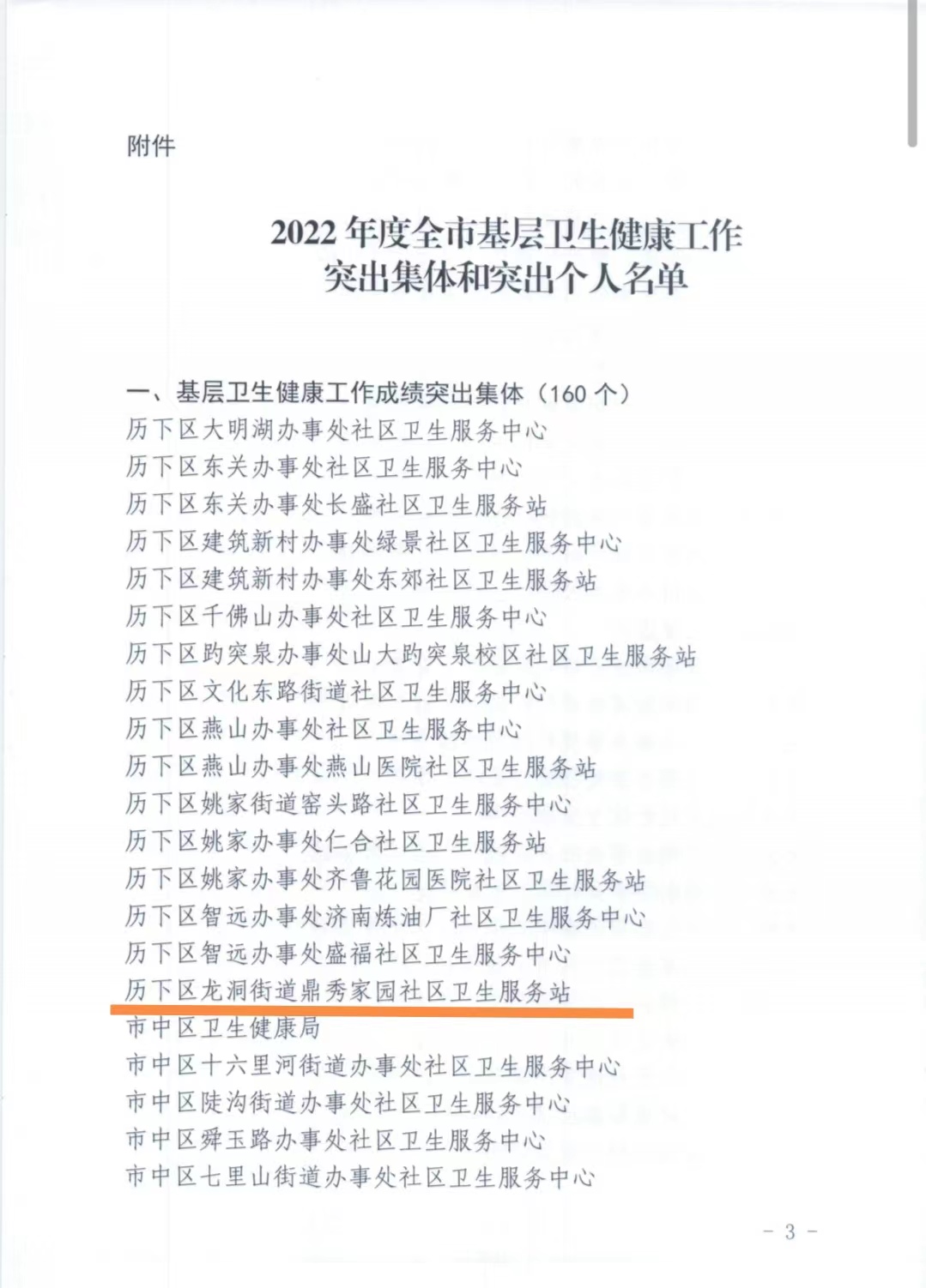 鼎秀家园社区卫生服务站因工作突出,被评为“2022年度济南市基层卫生健康工作突出集体”。