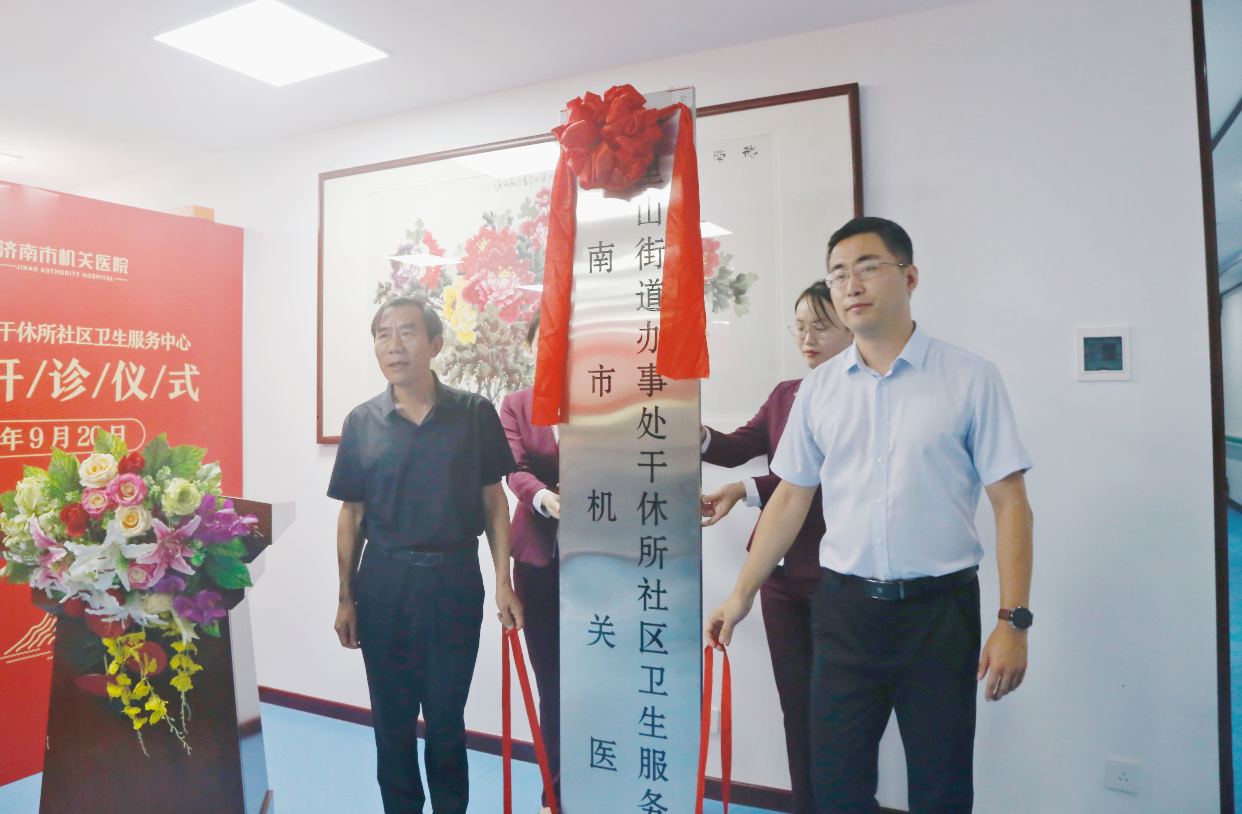 干休所社区卫生服务中心新址开诊仪式圆满举行,市卫生健康委二级巡视员米宽庆、基层卫生处副处长韩超,市中区卫健局党委书记牛纪伦,市老干部活动中心主任孔立明,市干休所所长孙蓉蓉,市中区六里山街道党工委副书记、办事处主任付钰,副主任赵丁立以及市机关中文av