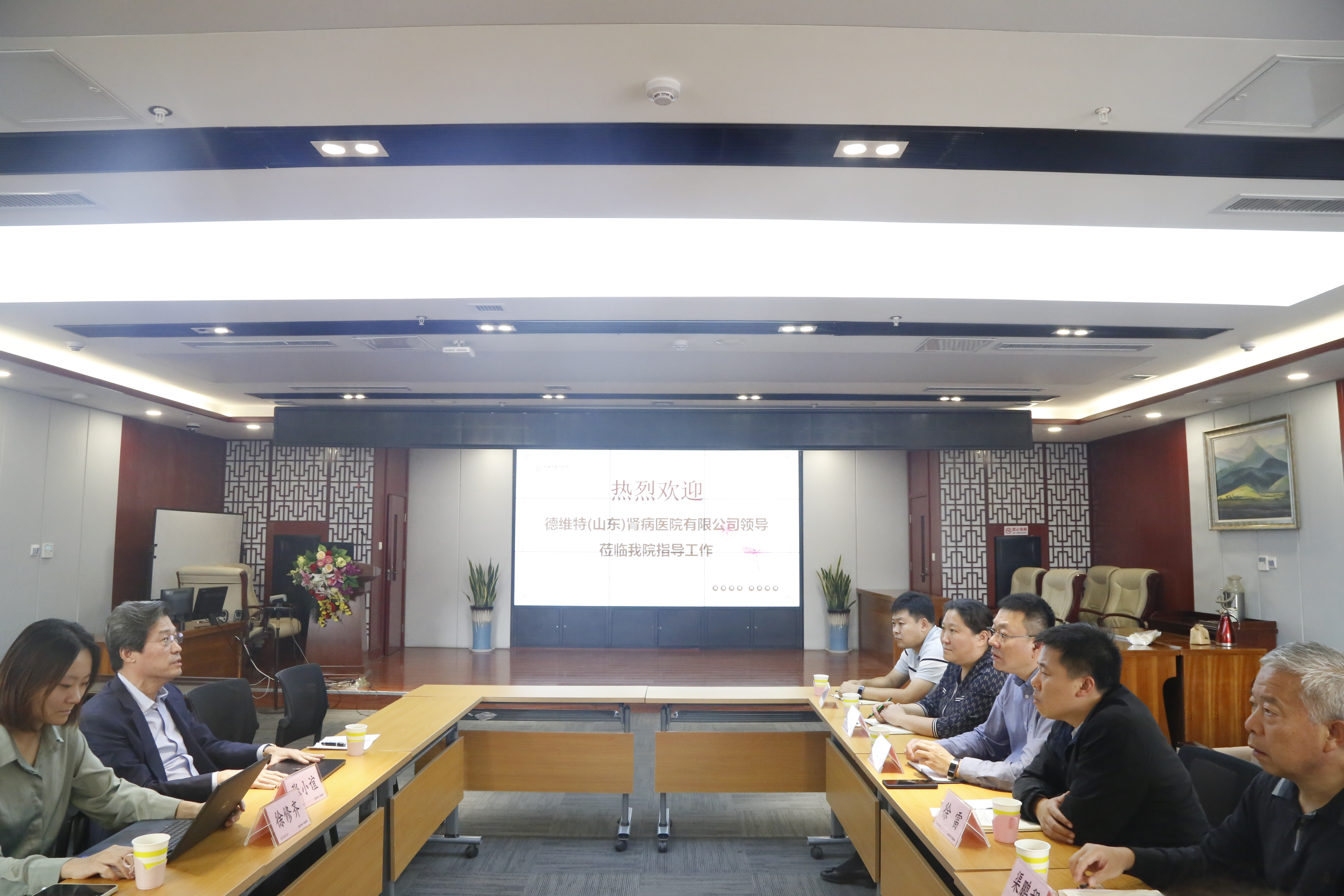 的基本情况,并针对血液透析科的业务发展进行了着重说明。随后,双方就合作方向、运营模式、设备配置、投资方案、人员管理等方面展开深入交流,对创新合作模式,促进项目落地实施达成了初步共识。