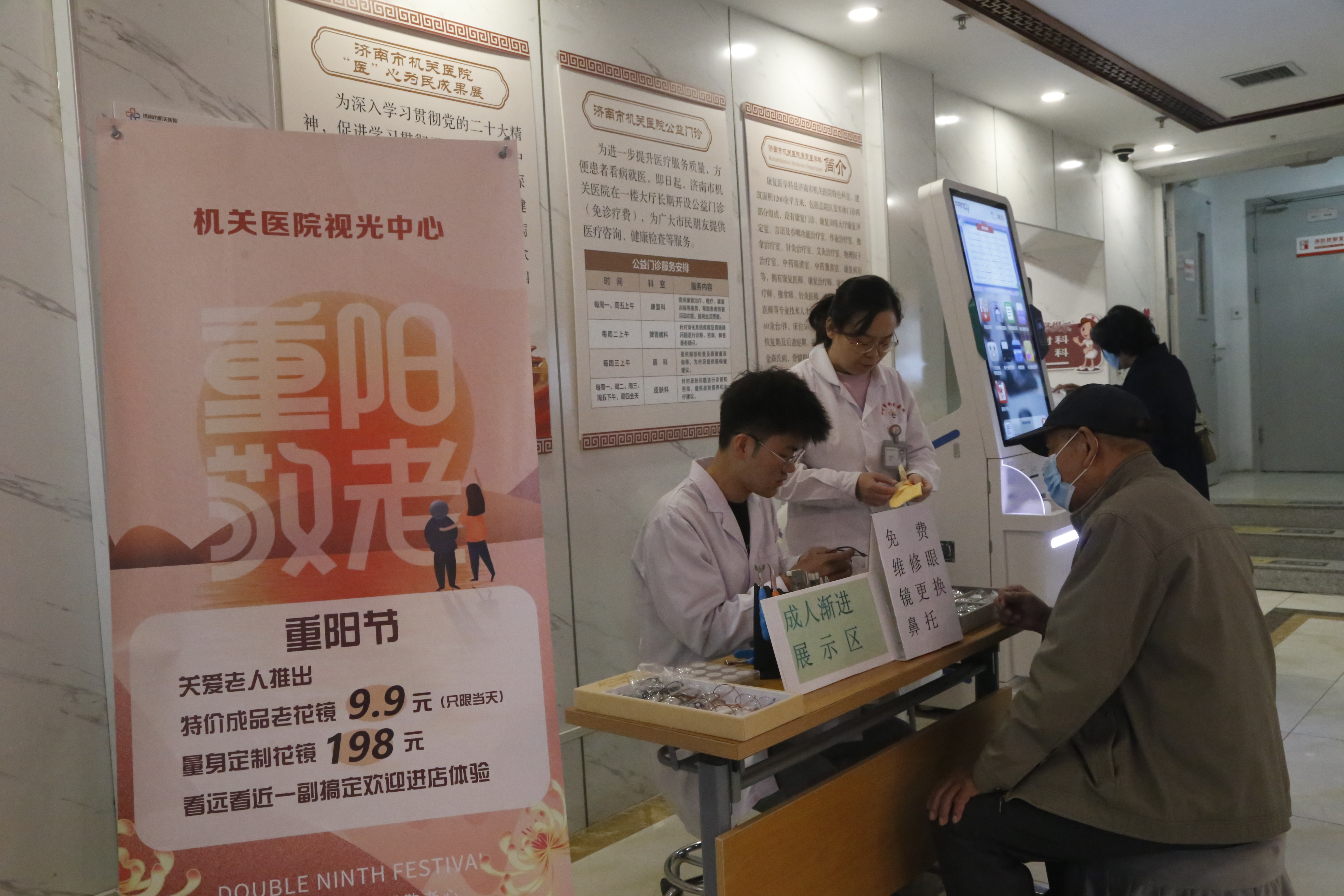 此外,视光中心还在总院区门诊大厅为来往患者免费维修眼镜,更换鼻托,为老年患者普及老花眼健康知识,推出特价老花镜等。