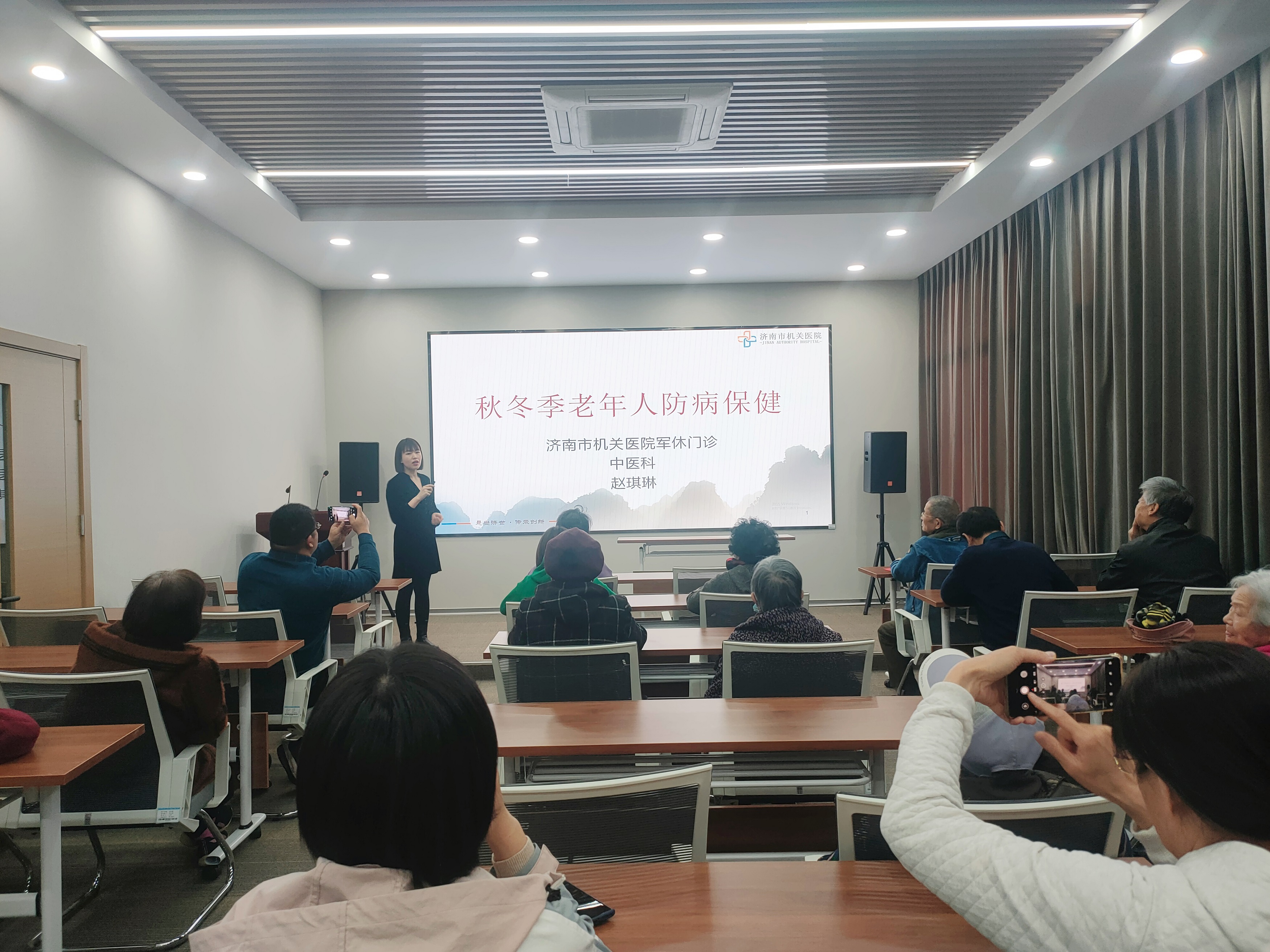 讲座重点围绕“老年人秋冬季养生”这一主题,详细介绍了秋冬季节常见病、注意事项及预防措施,提醒大家注重饮食调养,保持情志舒畅,合理运动,提高身体免疫力。讲座结束后,志愿者针对大家提出的健康养生问题一一进行解答,并提出了合理化建议,活动受到军休干部的一致好评。
