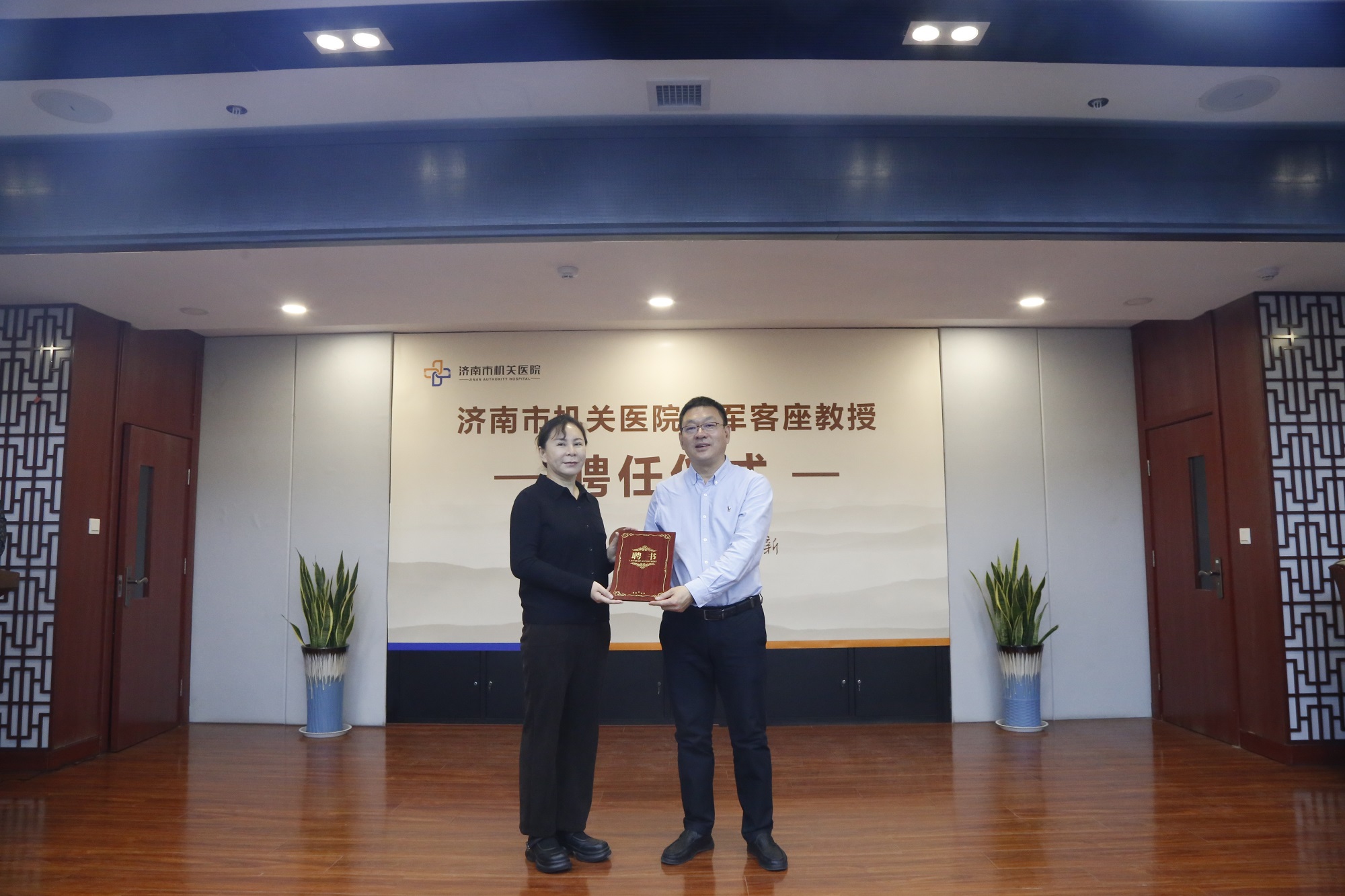 与冷军教授签订聘任协议,党委书记王俊峰为冷军教授颁发聘书。