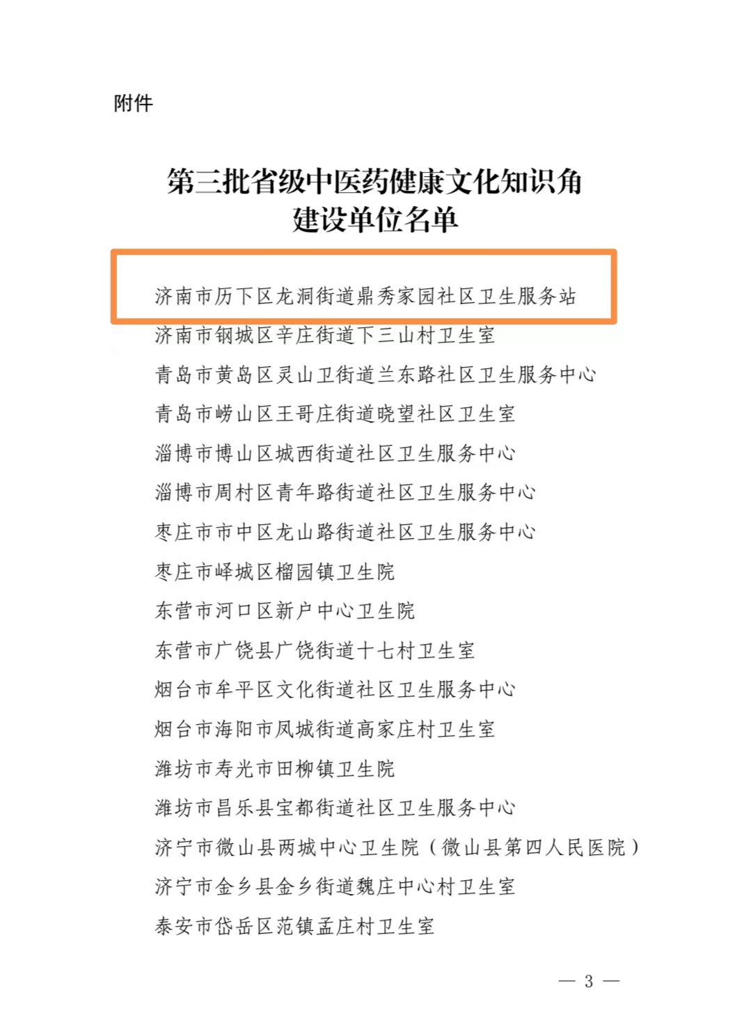 承办的历下区龙洞街道办事处鼎秀家园社区卫生服务站顺利入选。