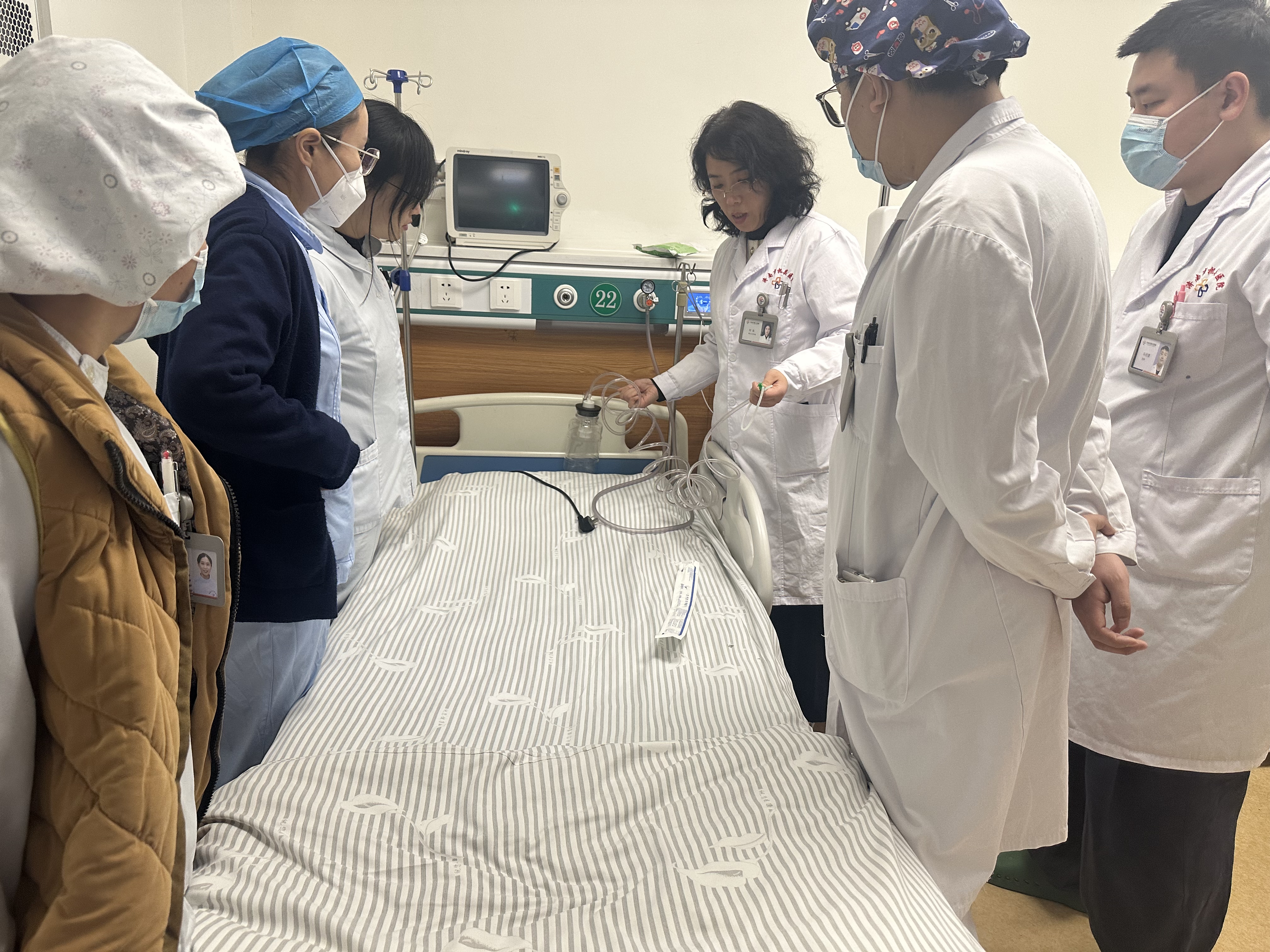 为提高科室医护人员应对突发意外伤害的应急处置能力,提升急救技能操作水平,12月29日,中文av 血液透析科组织全体医护人员开展急救专题培训,强化急救专业技能。 培训会上,血液透析科负责人刘苗就近期发生的抢救病例进行了复盘与讲解,并现场演示了抢救车的救护常识,以及吸痰器、简易呼吸器的操作方法等。此次培训帮助大家熟练掌握了吸痰器和简易呼吸机的操作要点,进一步提高了大家的急救反应能力,为及时、有效、快速地挽救患者生命起到了良好地促进作用。(王继梅)
