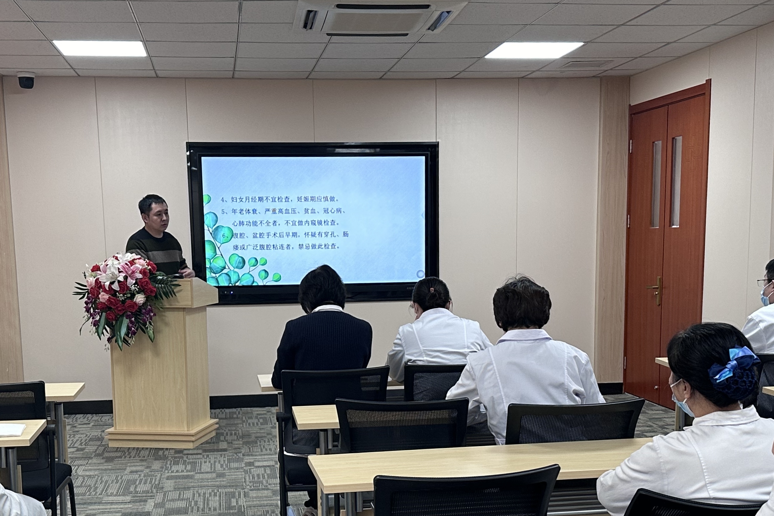 内镜室到鼎秀家园院区开展消化内镜专题培训,鼎秀家园院区负责人闫凌主持培训。