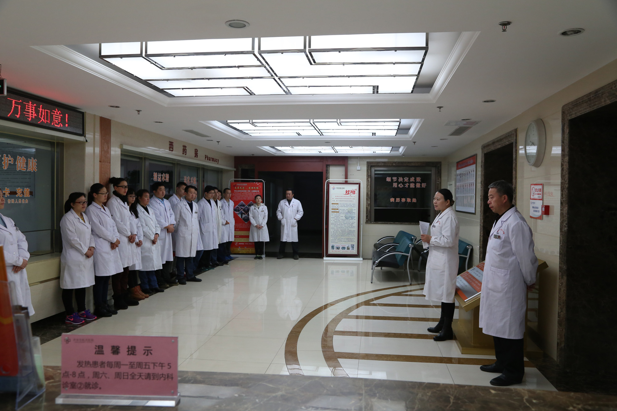2月14日上午八点,春节长假上班第一天,中文av在门诊大厅即时召开了全院干部职工“收心”工作会议。