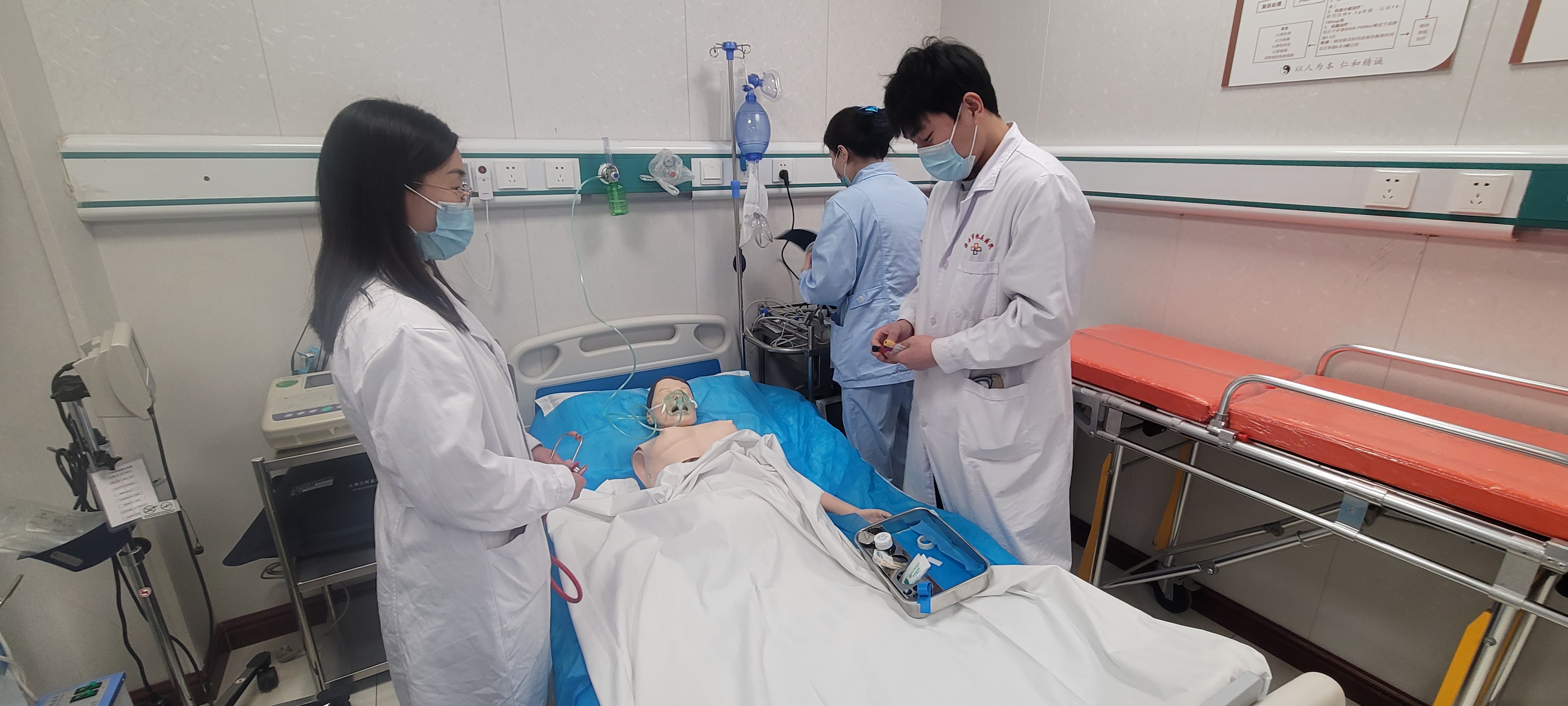 本次演练以门诊患者突发医疗紧急情况为背景,患者突发心前区疼痛,医生现场查体并详细询问患者病情;护理人员立即进行吸氧、心电监护、建立静脉通路(左上肢);医技人员立即进行急诊化验检查。急救小组根据检查结果,立即给予患者口服药物、静脉注射,并备好除颤仪,以便进行后续治疗。整个模拟演练过程快速有序。