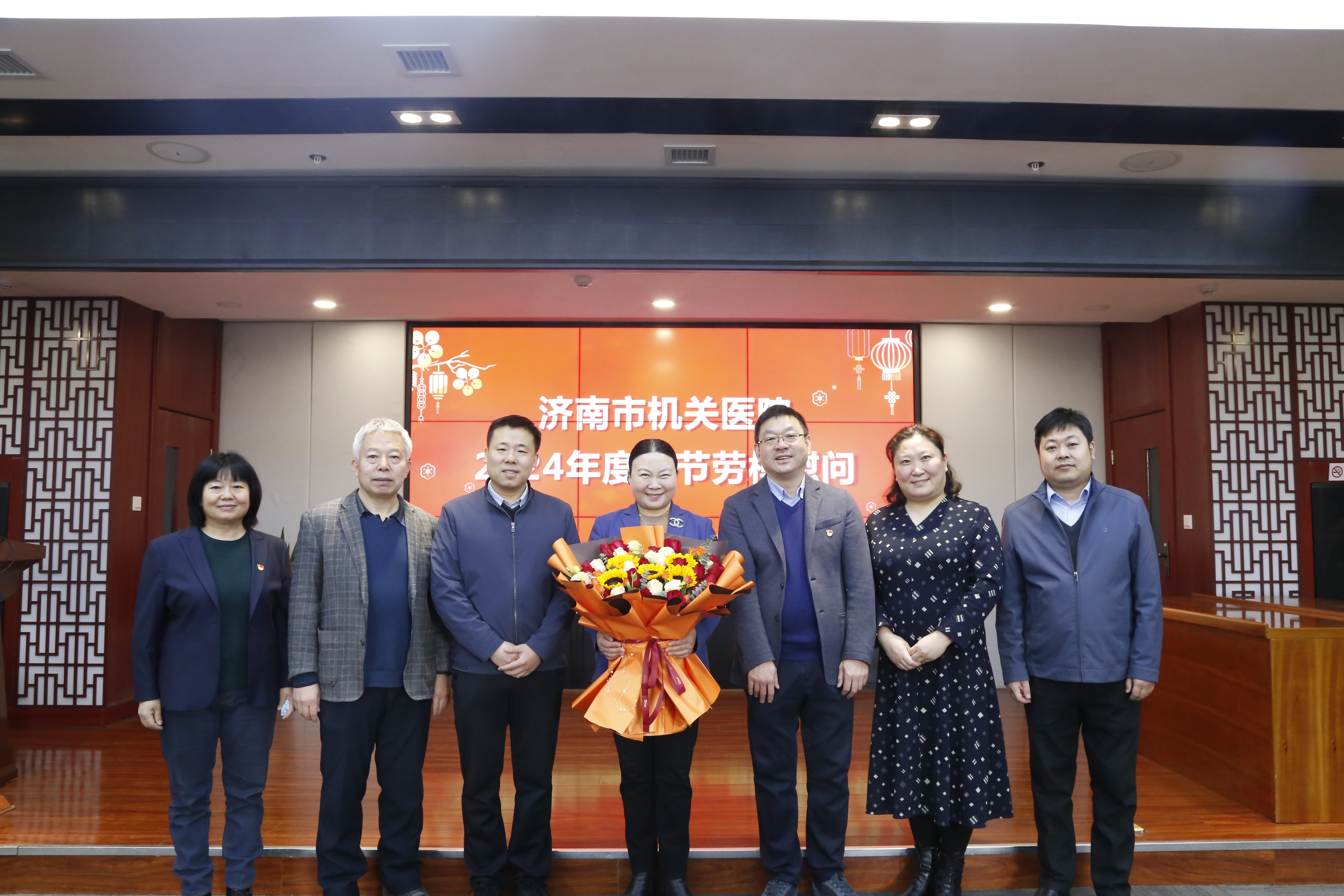 领导班子齐聚五楼会议室,向全国先进工作者杜文建同志送上鲜花,并转交《中华全国总工会致全国劳模和全国五一劳动奖章获得者的春节慰问信》,向她致以诚挚的问候和新春的祝福。