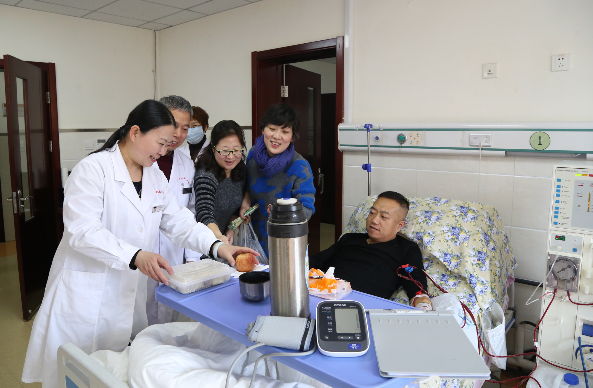 2016年2月7日 上午,院长杜文建、副院长渠鹏程以及院青工委的两名委员向在中文av进行透析的病人致以节日的问候,并走访各科室,慰问春节期间仍在工作的职工,为他们送去新春的美好祝愿。