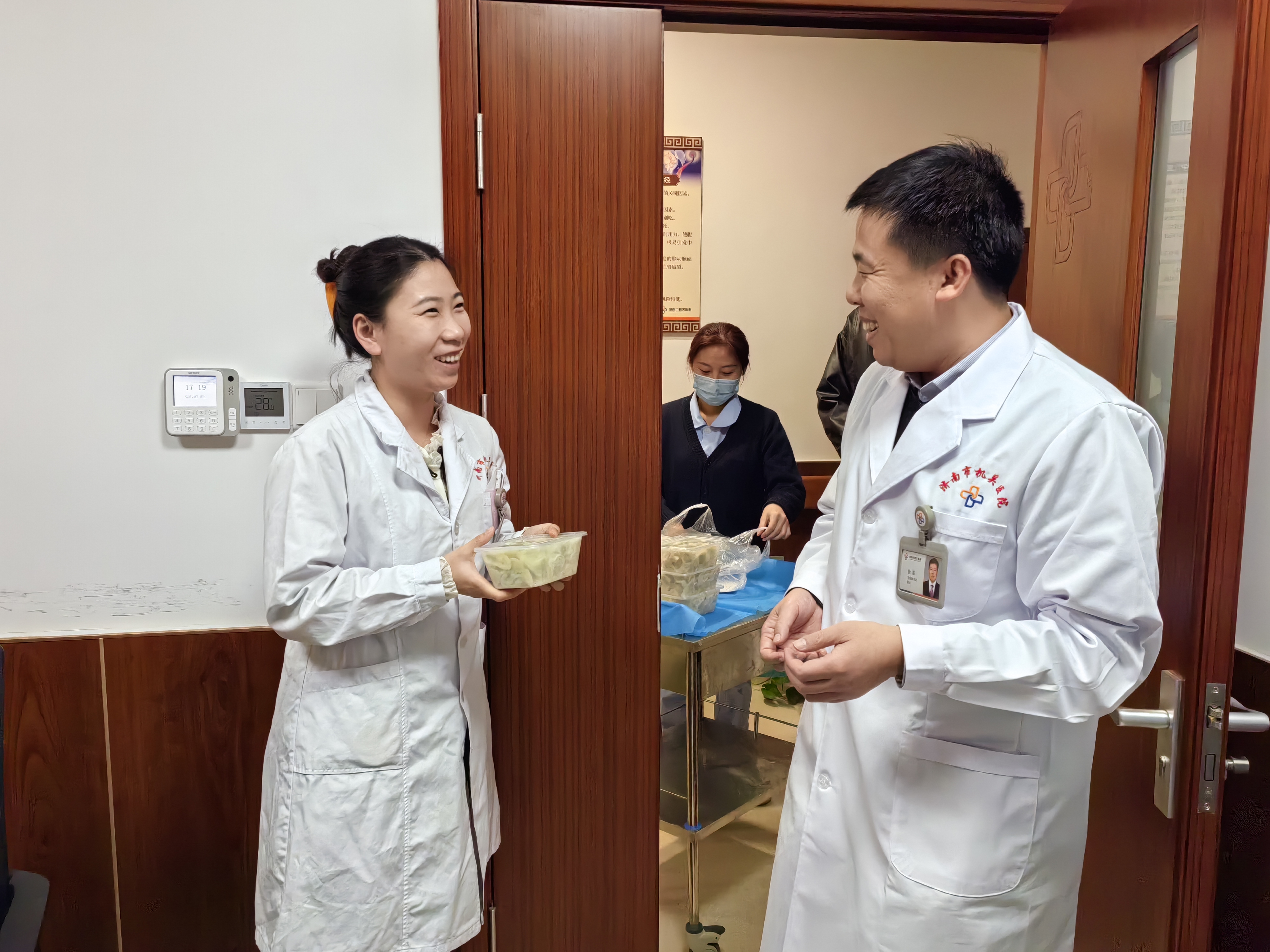 多年的传统。患者和家属接过这满载问候和祝福的新春饺子,笑在脸上,暖在心里。院领导们走到值班人员身边,与大家亲切握手,感谢他们的辛勤付出,并详细询问他们的工作情况,对他们牺牲春节假期,坚守工作岗位表示感谢,并希望大家提高安全隐患意识,确保节日期间医疗安全、和谐稳定。(刘洋)