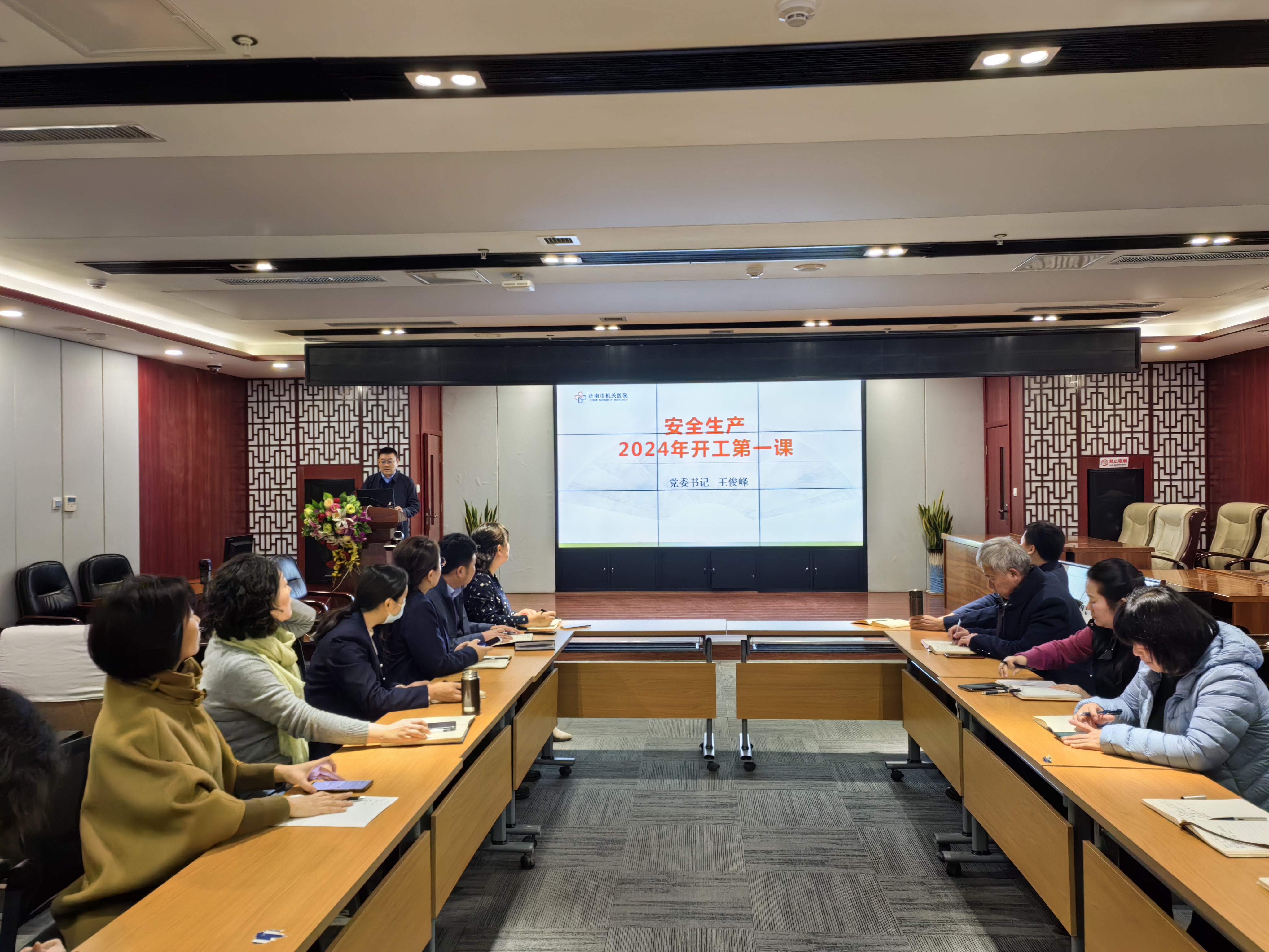 在五楼会议室召开安全生产工作专题会议,院党委书记王俊峰主讲“开工第一课”,全体中层人员参加会议。