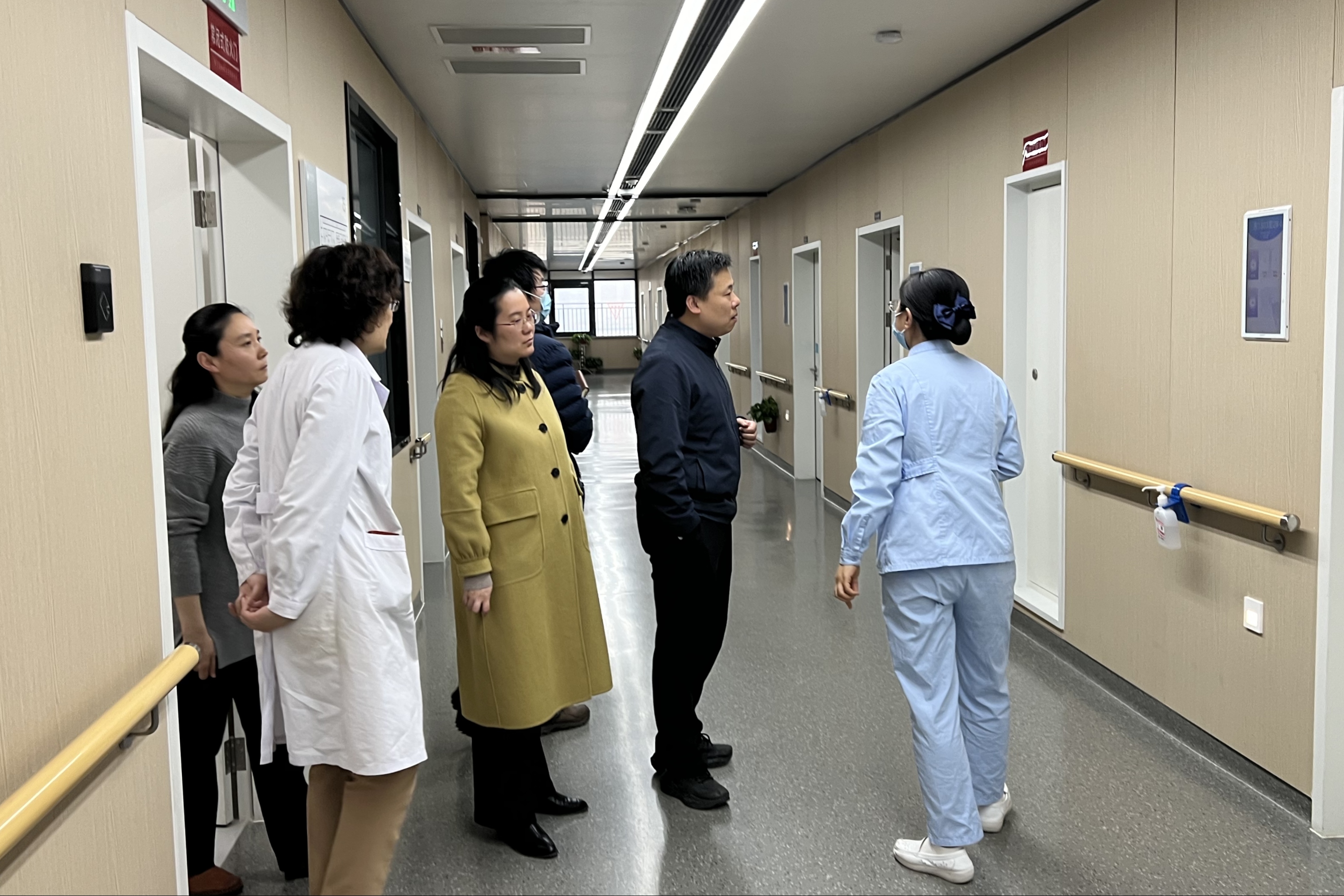 老年病科病房,听取了卢笑晖主任团队针对科室规划筹备、团队组建、场地选择、设备管理等方面的意见和建议。