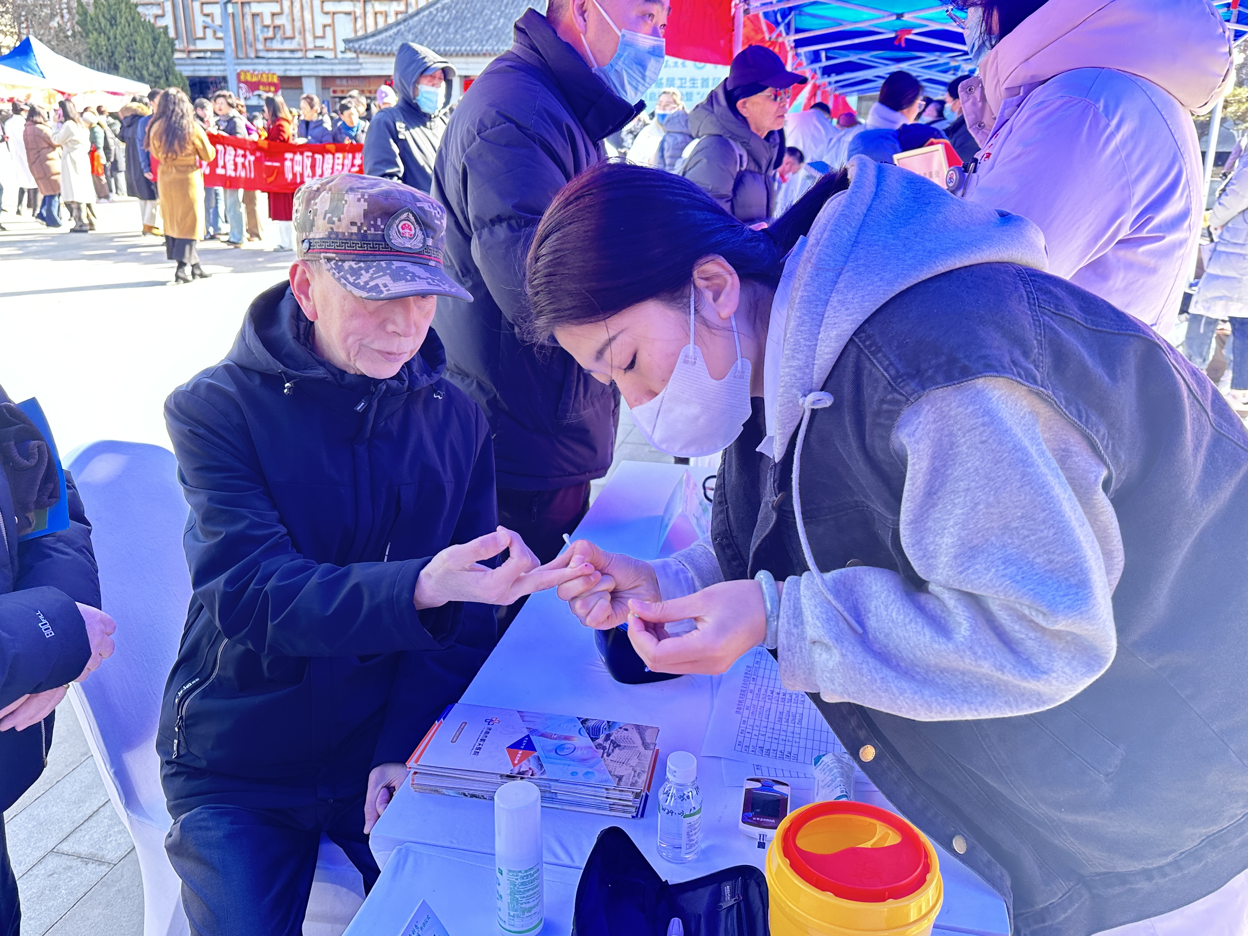 活动现场,医务人员为前来咨询就诊的市民提供免费测量血压、血糖,耳穴压豆、把脉问诊等服务,耐心询问他们的身体状况,解答他们提出的各种问题,详细讲解饮食起居注意事项,普及健康知识。