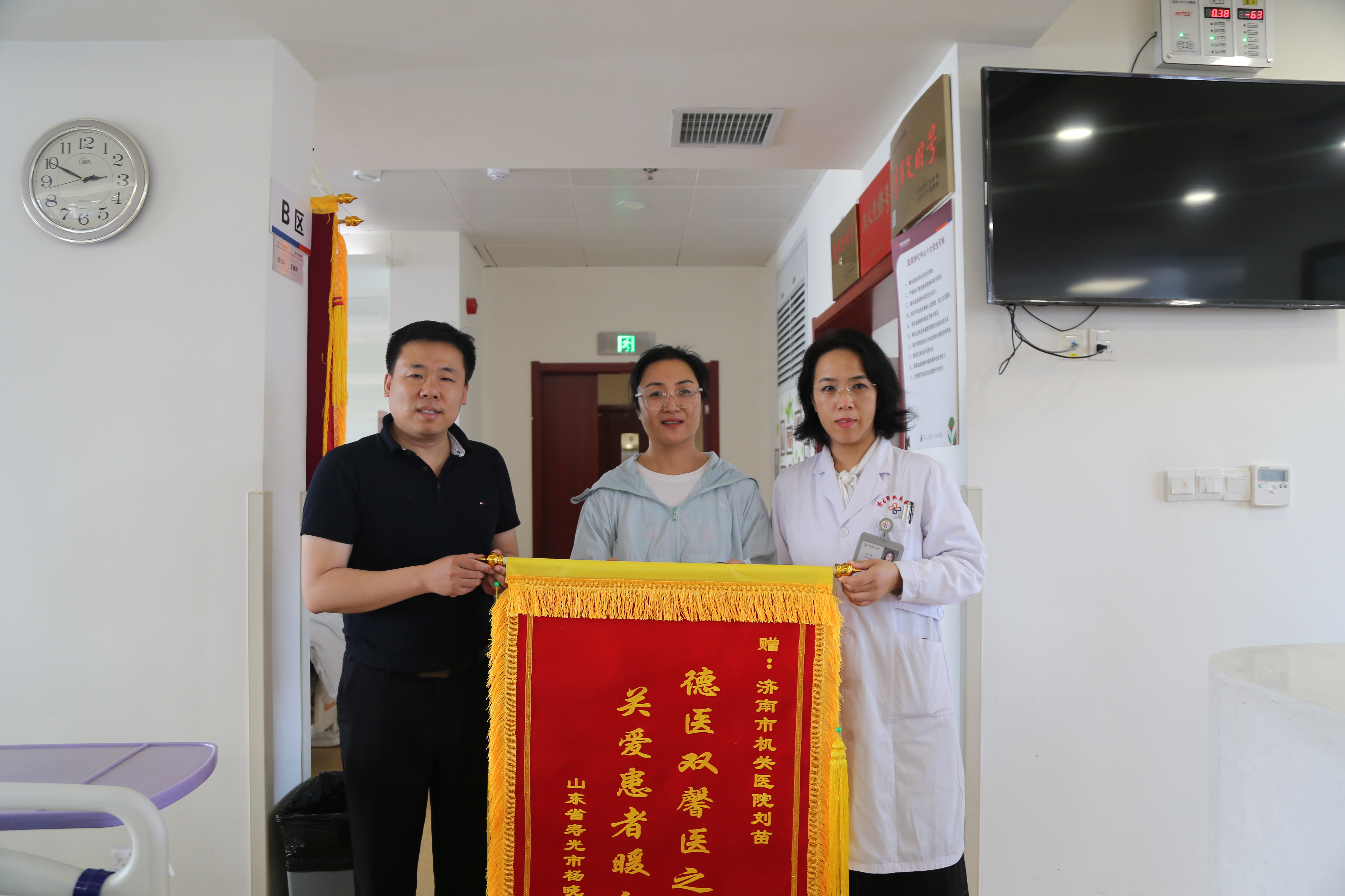 刘苗主任接过锦旗并表示,会倍加珍惜患者给予的这份肯定和荣誉,继续努力工作,以更加饱满的热情和更高的标准,为患者提供更加优质的医疗服务。(张岩磊)