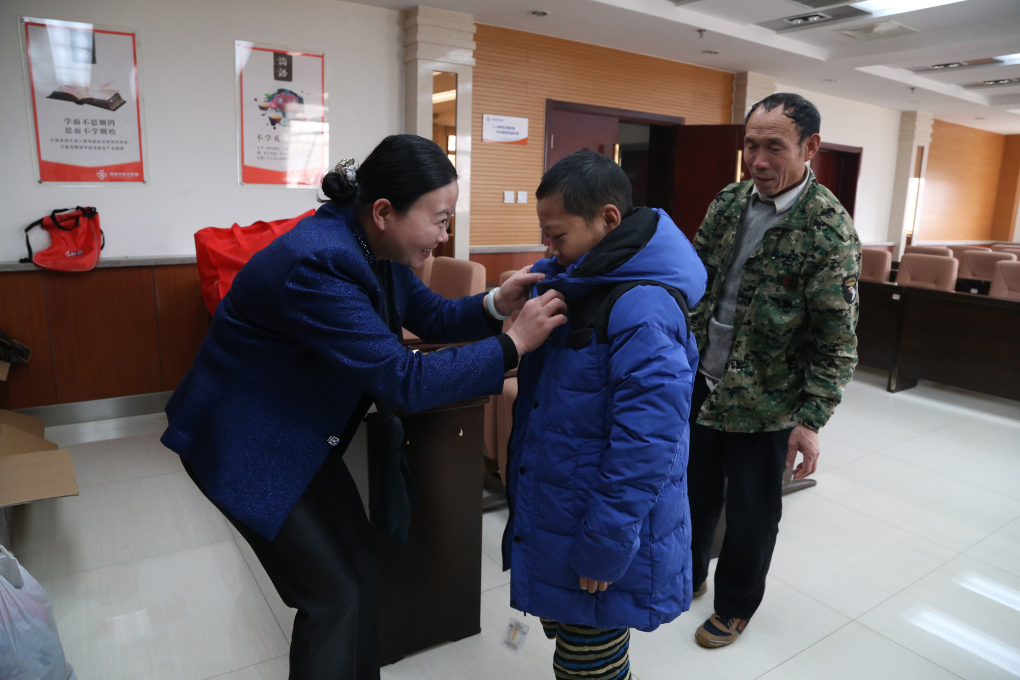 杜文建院长为小廷彬穿上她亲自挑选的羽绒服,嘱咐他注意休息要坚定战胜病魔的信心。中医药预防保健中心代表来到捐赠现场为廷彬送上科室所有人员的慰问与祝福。与中医药预防保健中心结对共建单位也同时送来了关怀与爱心。