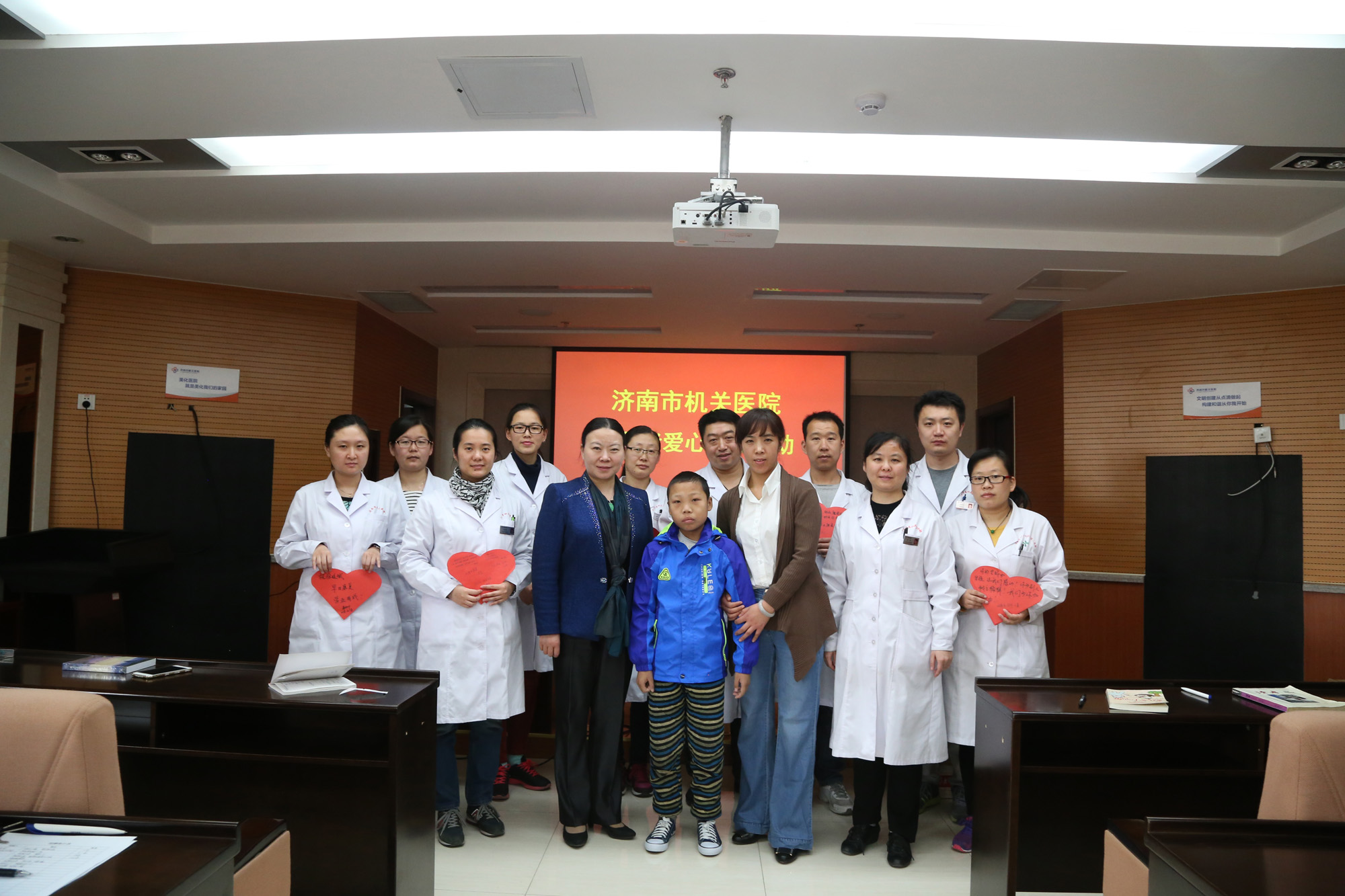 在“精准扶贫暖人心,传递大爱正能量”大型医疗救助公益活动中免费为小延彬提供了透析治疗。为进一步宣扬这种博爱精神,中文av青年工作委员会在3月18日上午举办了以“博爱暖人心、传递正能量”为主题的爱心捐赠活动,呼吁大家献出爱心,去帮助患病少年徐廷彬。全院职工热烈响应,一场温暖的爱心捐款行动在院内迅速展开。