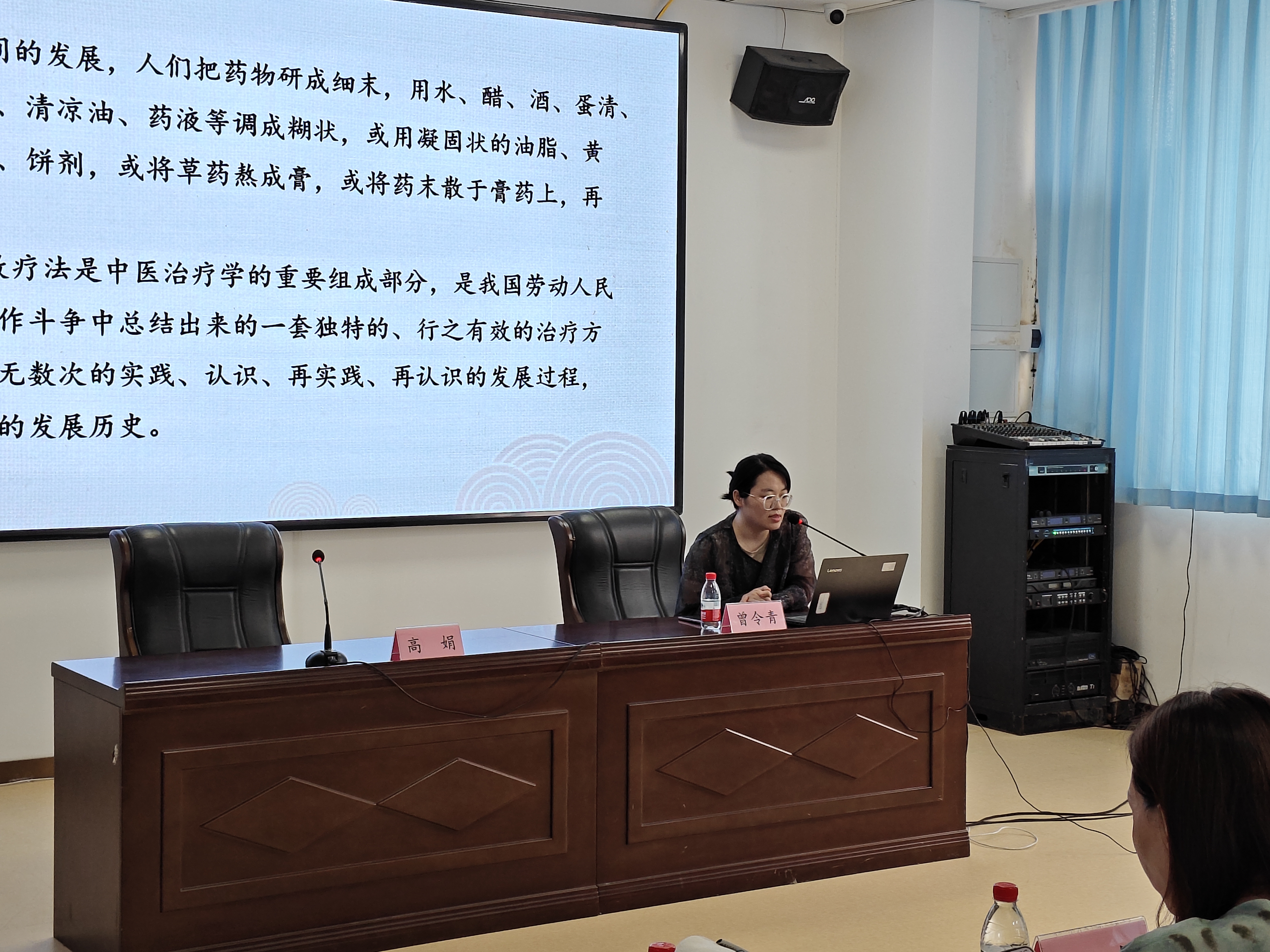 本次培训采取线上、线下两种方式进行,曾令青医师以《穴位贴敷疗法》为题,结合自身工作经验,为大家详细介绍了“冬病夏治”穴位贴敷和“夏病冬治”穴位贴敷的原理、特定穴位、适应人群、禁忌症、注意事项等,并针对临床常见问题一一作出解答。培训有效增强了槐荫区社区基层的医务人员对穴位贴敷的认识,提高了基层医务人员的服务能力和工作效率。(王心慧)