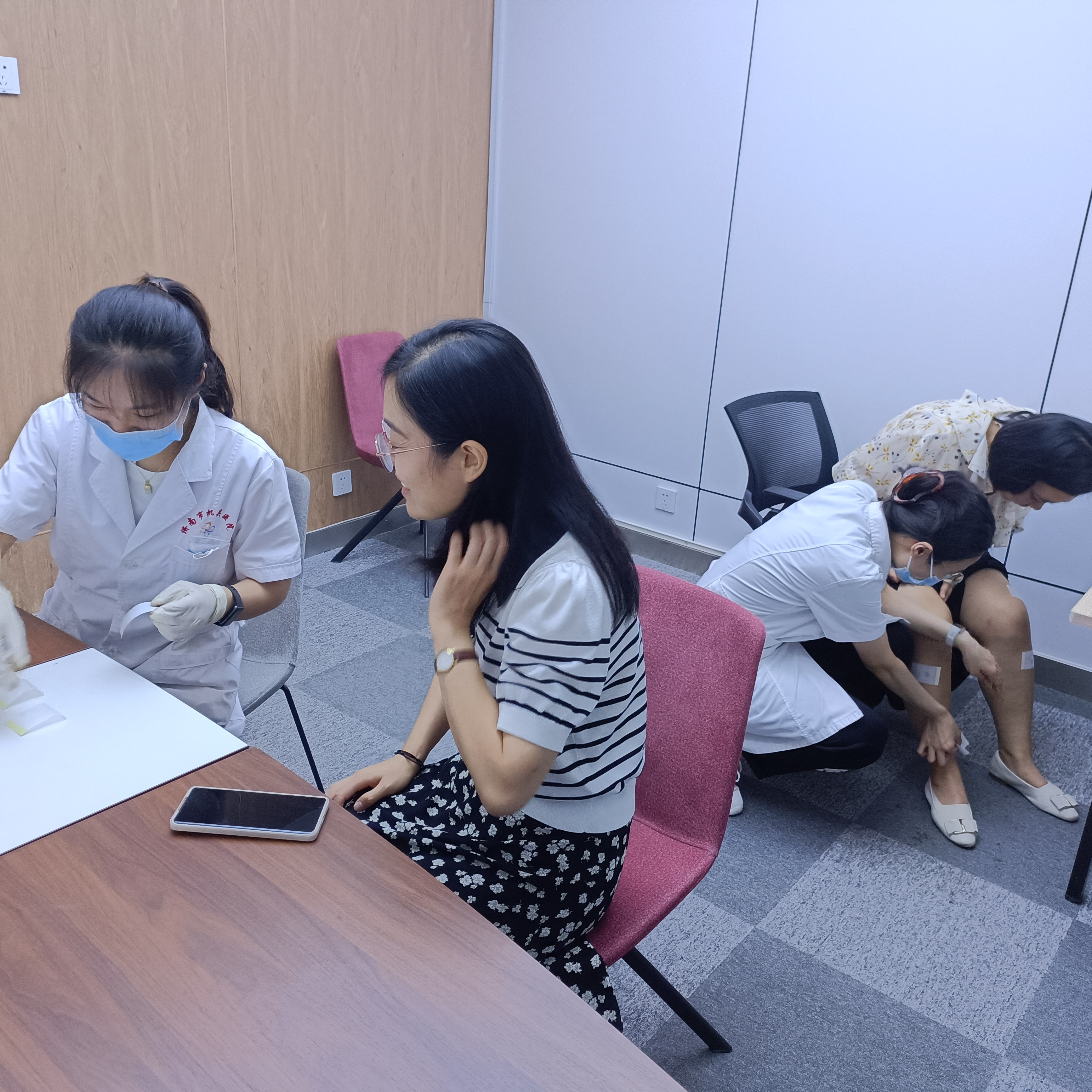 颐心苑门诊医务人员走进济南中央商务区,开展“为民办实事——冬病夏治穴位贴敷”活动。