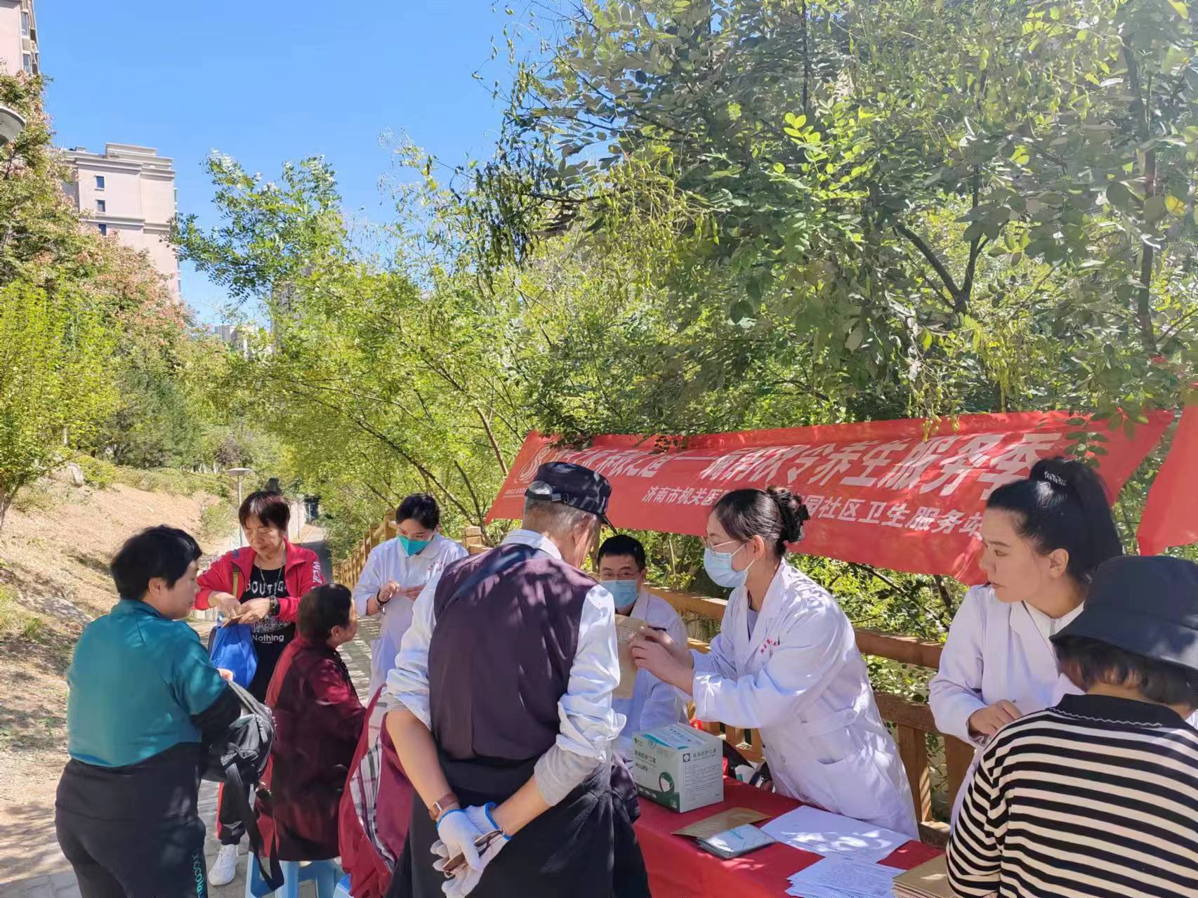 鼎秀家园院区济小鹊爱健康志愿服务队走进西江华府社区开展“重阳节送健康”义诊活动。