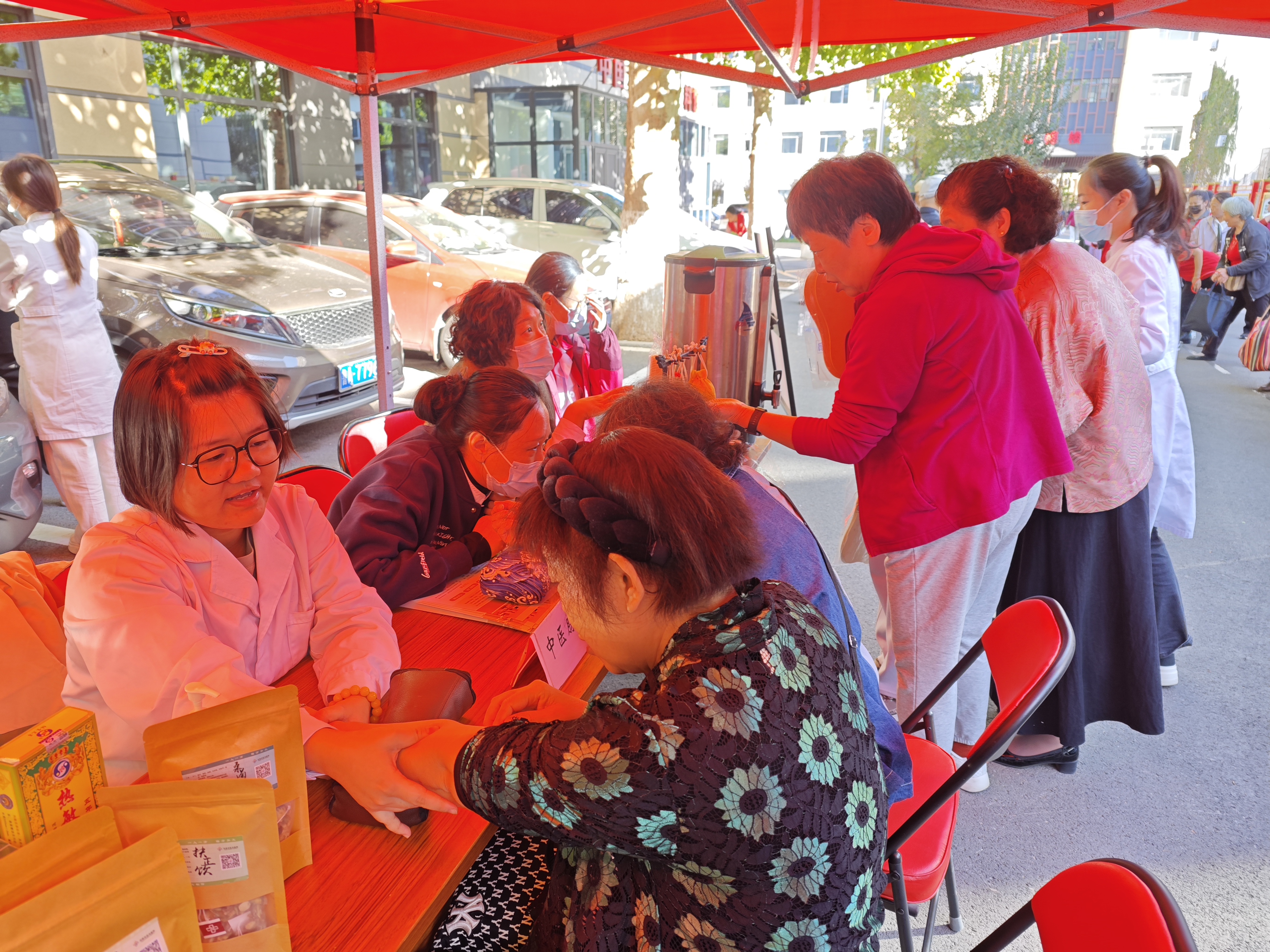 当天一早,义诊还未开始,就有不少老年大学学员等候在现场。义诊团队为学员们免费测量血压、诊脉,展示中医外治特色疗法及道地药材,科普医保政策,讲解中医对常见病、多发病及自我保健的相关知识,并耐心解释学员咨询的各种问题,普及中医养生知识,让更多学员走进中医、了解中医、信任中医。