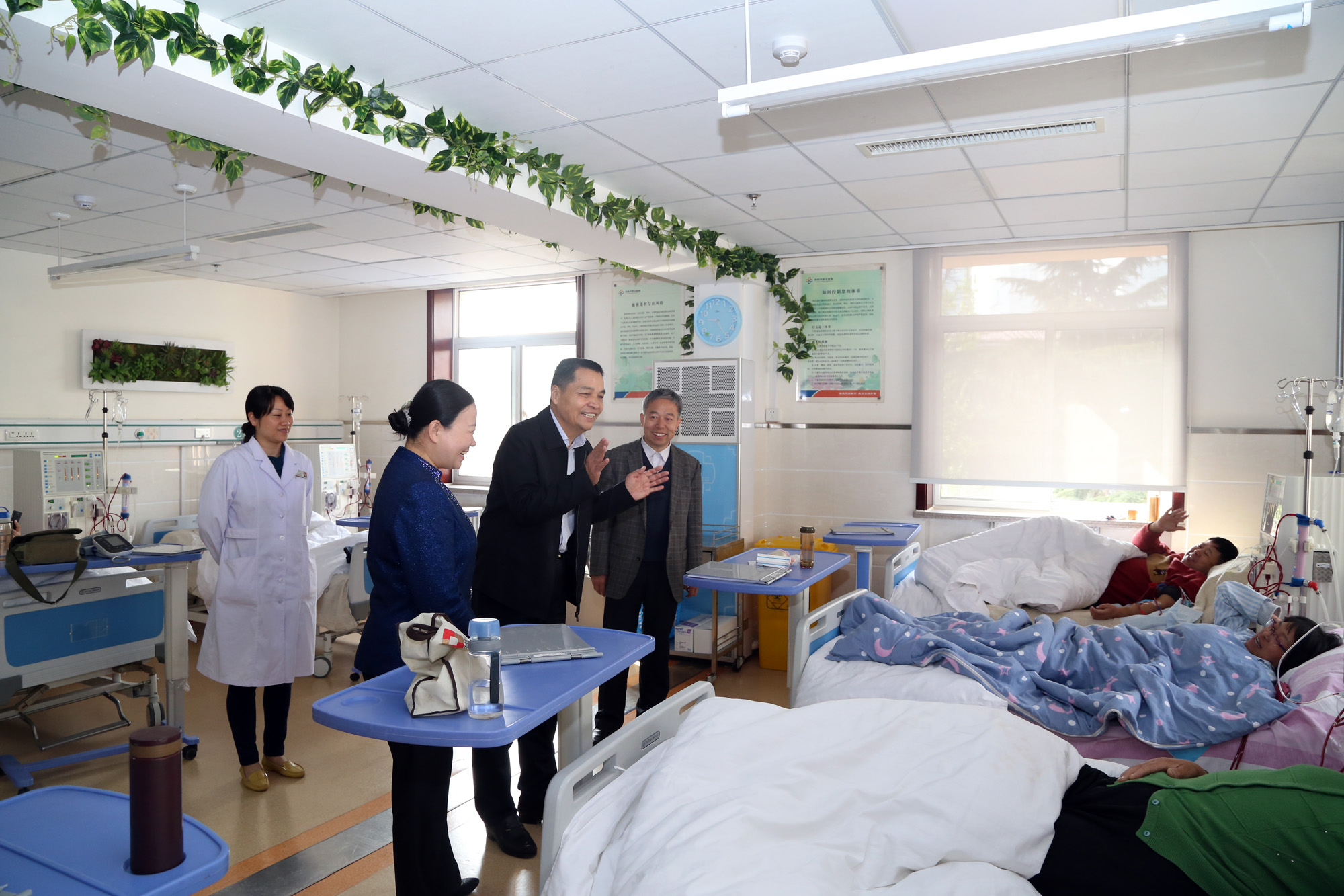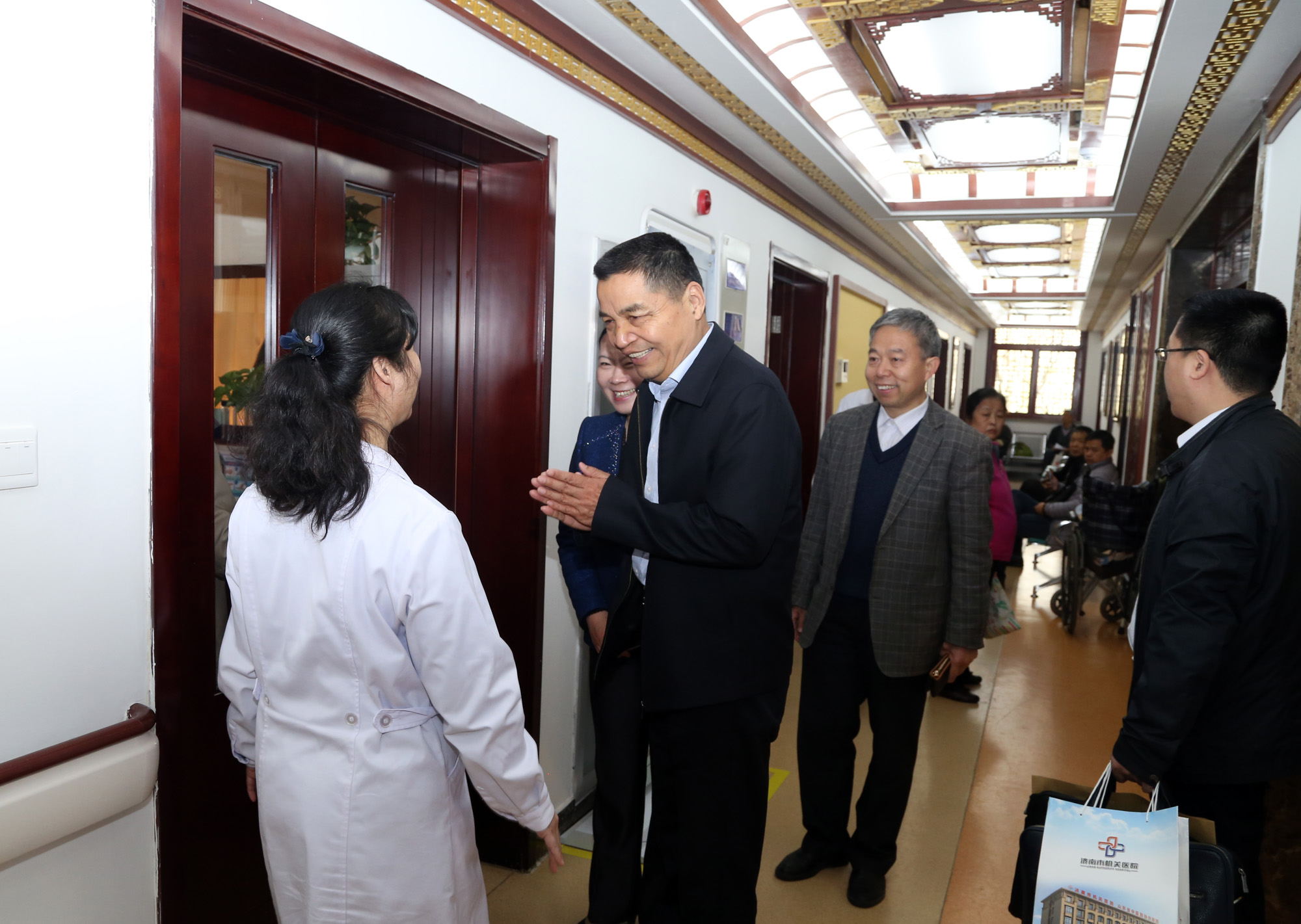 3月30日上午,济南市委常委、总工会主席王以才来到中文av看望老年病人并与他们进行了亲切交谈。院领导班子陪同并介绍了情况。